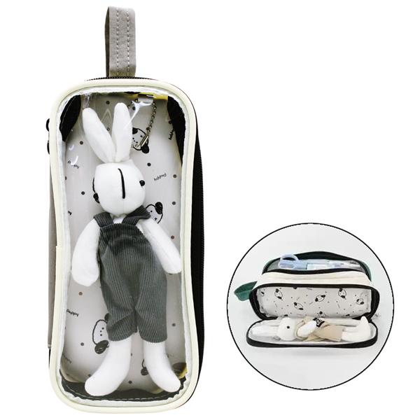 ✨Bóp Viết Trong Suốt Kèm Thỏ Con - Shunde 9109 - Màu Xám