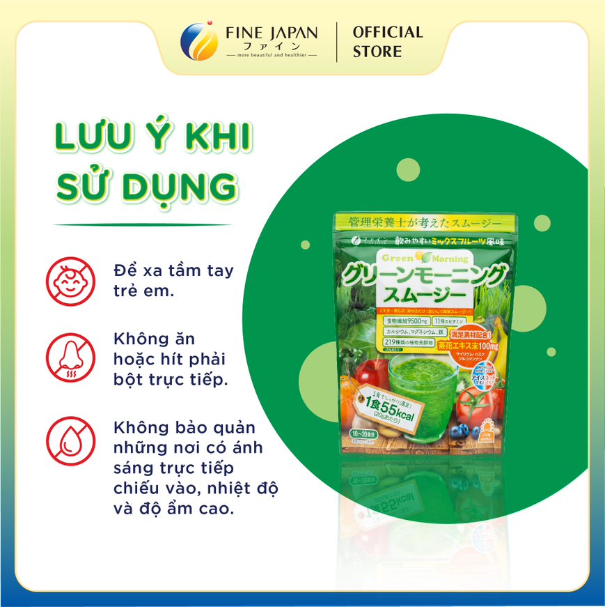 Combo SAKURA TẾT VIÊN MÃN - Bột Lúa Mạch Và Rau Củ Fine Japan Green Morning Smoothie Gói 200g - Vitamin C+D Fine Japan Ngăn Ngừa Suy Nhược Cơ Thể Hộp 60 Viên - Viên