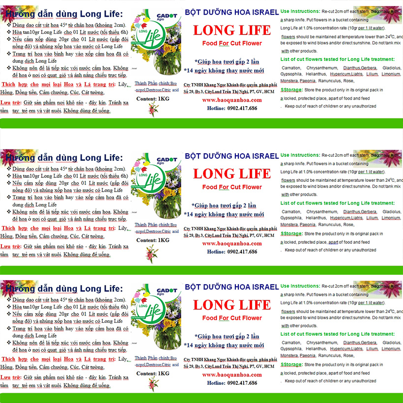 Bột dưỡng hoa Longlife SG của Israel giữ hoa cắm lẵng tươi lâu hơn