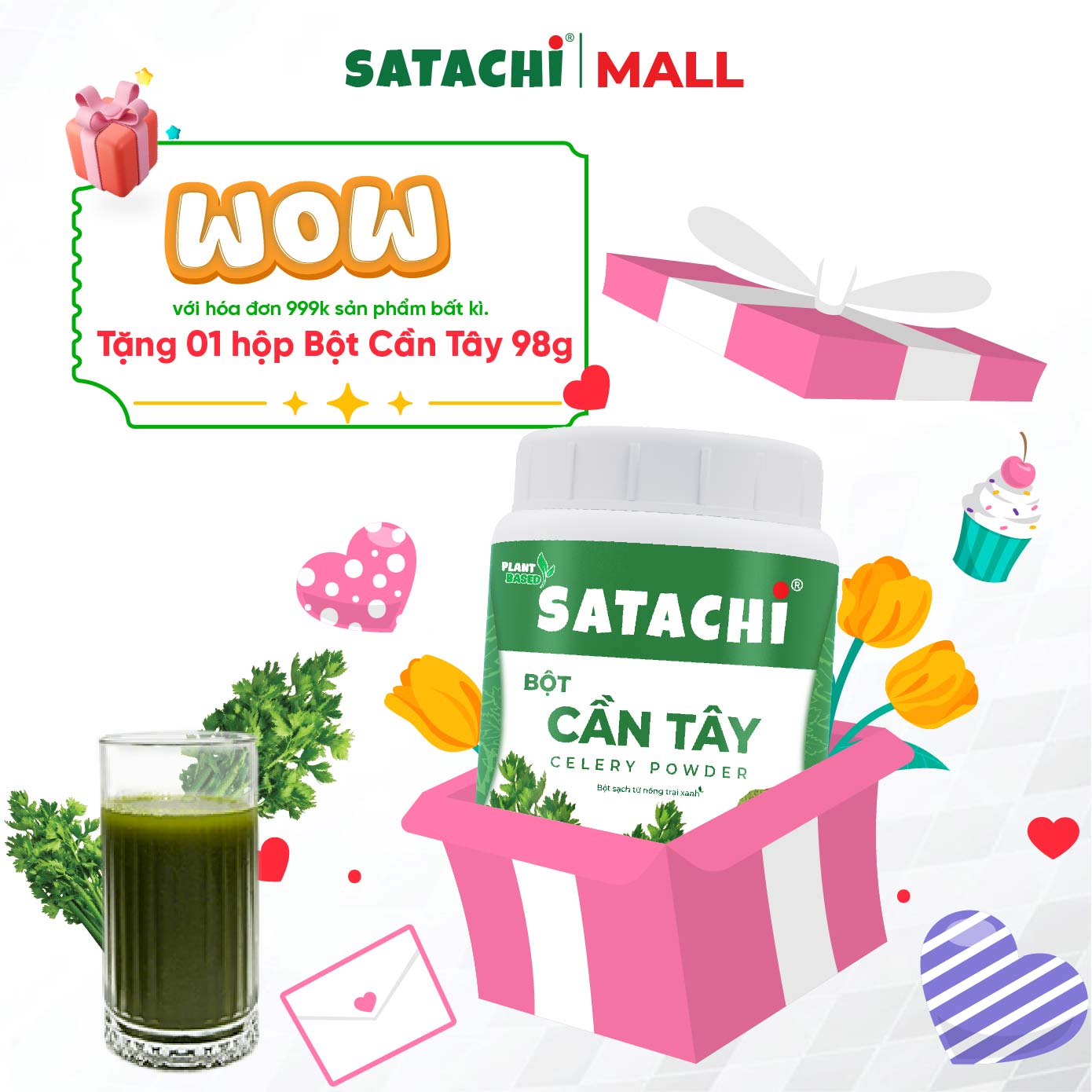 - Với hóa đơn 999K sản phẩm bất kì SATACHI, Quý Khách Hàng sẽ được tặng 01 hộp Bột Cần Tây nguyên chất SATACHI 98g THÔNG TIN SẢN PHẨM: