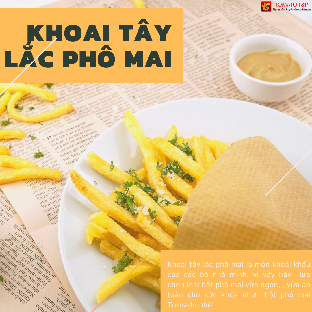 - Bạn có thể dùng bột phô mai để rắc lên khoai tây chiên, khoai tây lốc xoáy, khoai môn chiên, khoai lang chiên, bắp rang, bánh tráng, da heo… để làm bánh, làm gia vị.