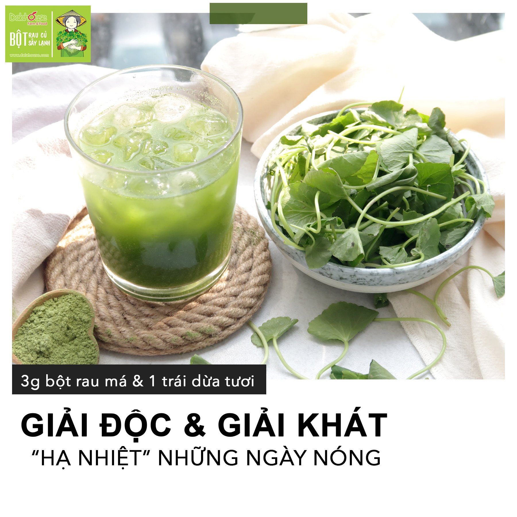 Hướng dẫn sử dụng: Bột rau má được sử dụng để làm Đồ uống, trộn trong sinh tố, sữa chua, món tráng miệng, salad, nước sốt và công thức nấu ăn.
