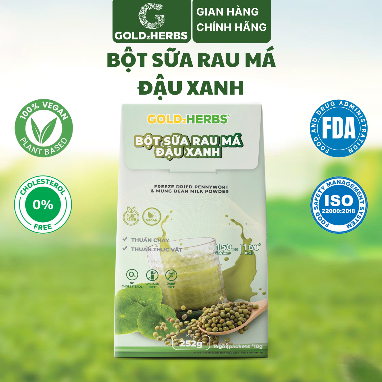 ✨Bột sữa rau má đậu xanh GoldzHerbs – 14 gói/ 500g