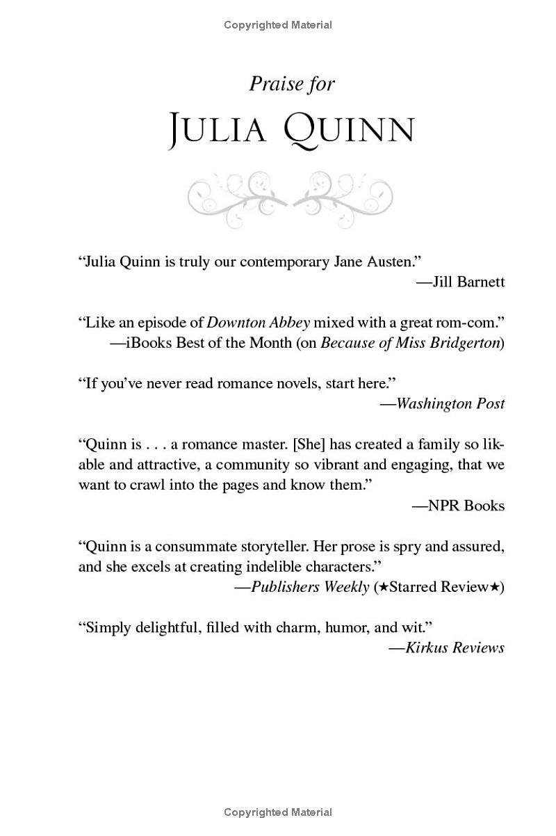 There were Bridgertons before the eight alphabetically named siblings. In the fourth of the Bridgerton prequel series, following The Other Miss Bridgerton, we go back to where it all began. . . from #1 New York Times bestselling author Julia Quinn