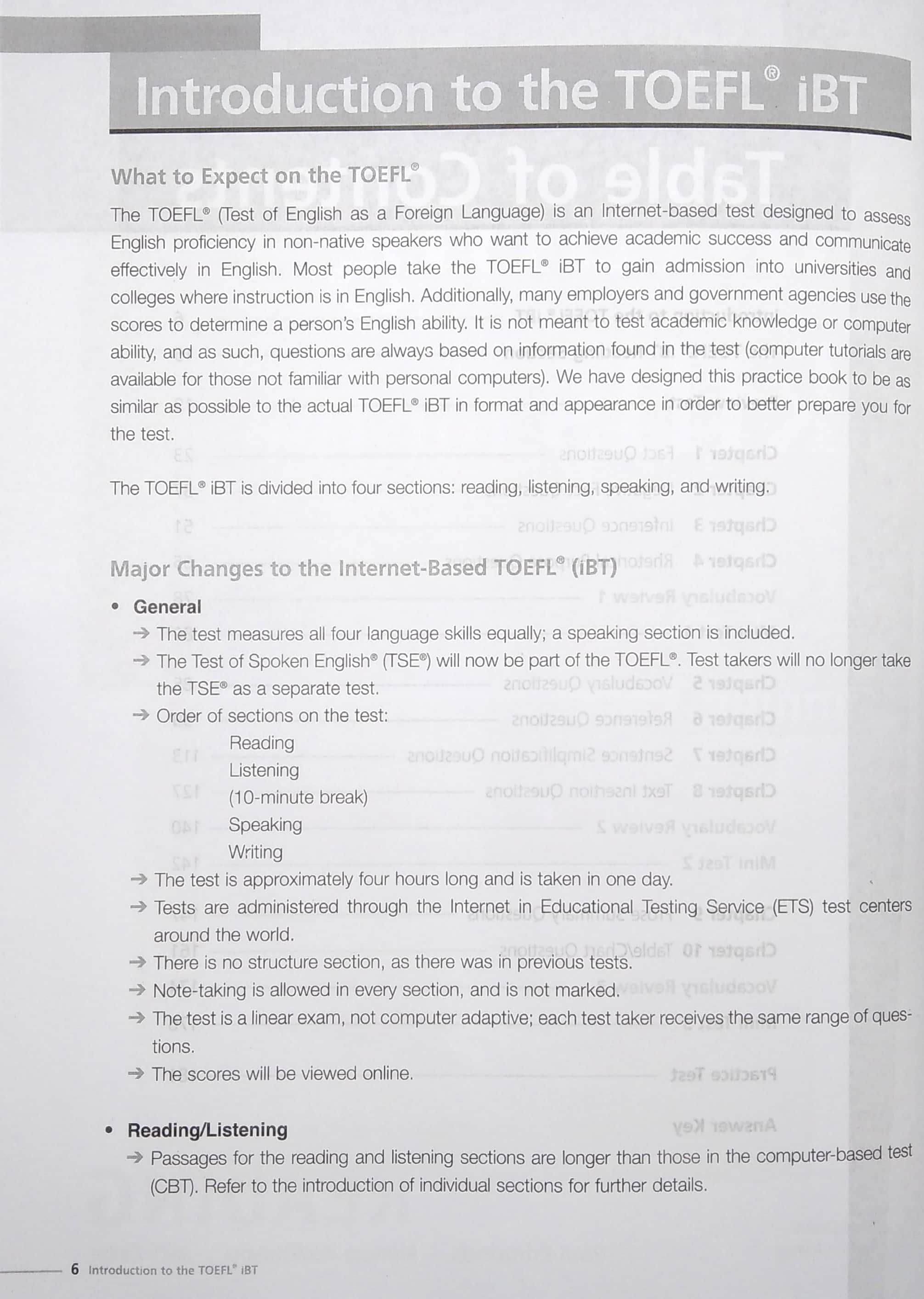 TOEFL iBT Test Structure: Reading, Listening, Speaking and Writing