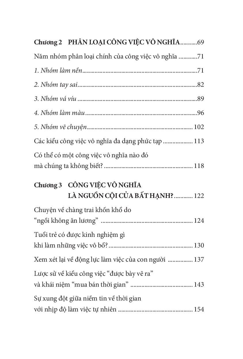 - Định nghĩa tam thời thứ nhất: Công việc vô nghĩa là một hình thức việc làm hoàn toàn vô nghĩa, không cần thiết hoặc có tính độc hại mà đến cả người làm công việc đó cũng không thể biện minh cho sự tồn tại của nó.
