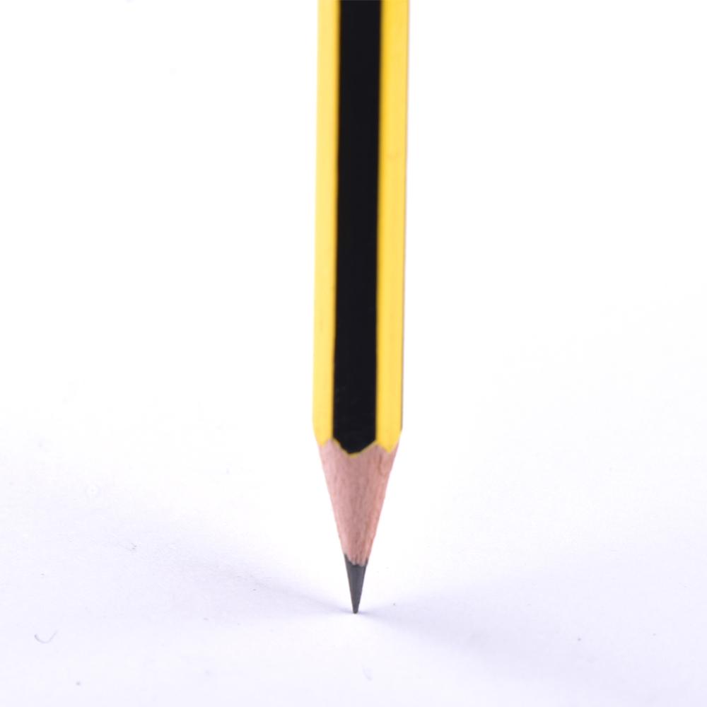 Bút chì thân gỗ có thân dạng hình lục giác, dễ cầm nắm khi viết. Thân có thiết kế đơn giản, sơn hai màu vàng và đen.