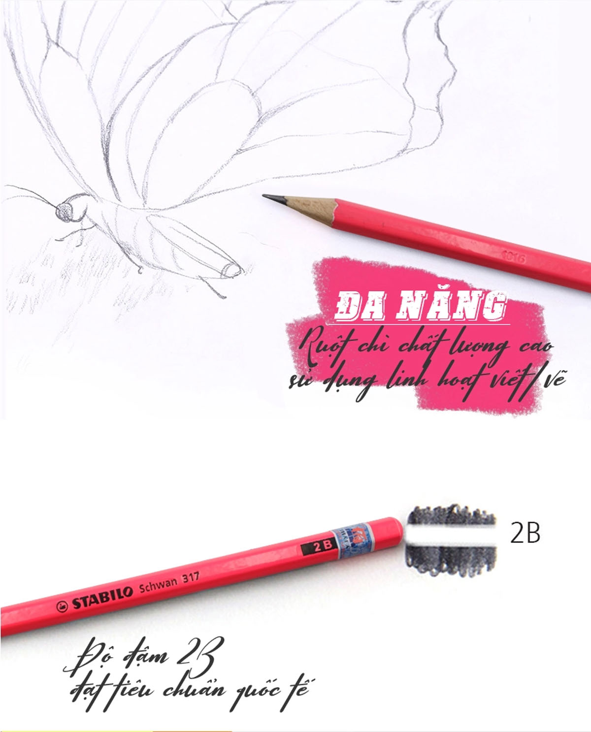 - Bút được làm từ gỗ chắc chắn, khó gãy, dễ chuốt - Ngòi bút có độ đậm 2B, chuyên dùng cho vẽ phác thảo, viết, thi trắc nghiệm - Thân bút thon dài, dễ