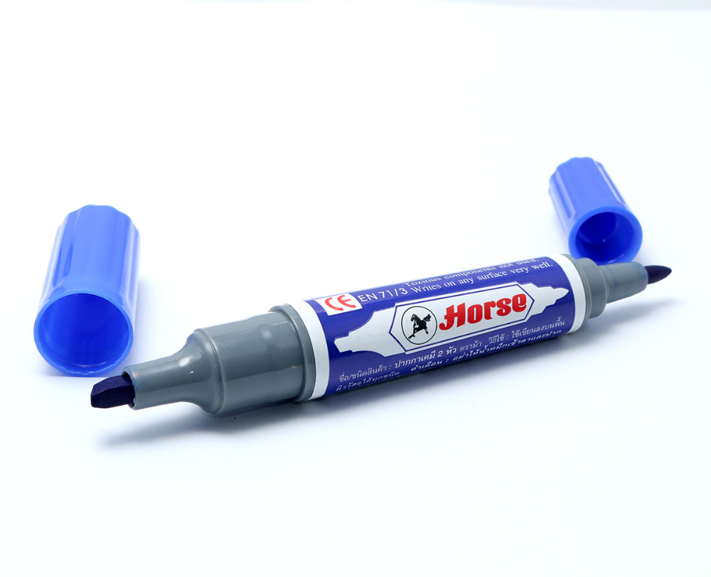 Bút lông dầu Thiên Long PM09 đầu lớn màu xanh, bút có 2 đầu, thân tròn, màu mực: xanh- đỏ- đen.