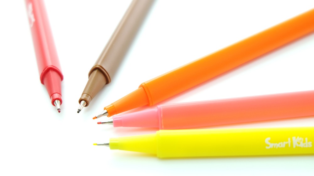 Với bút lông màu của Smartkids, bé có thể dùng để tô viền hoặc tô được cả một bức tranh lớn. Màu mực bắt giấy tốt, đều và không thấm ngược ra sau giấy. Hơn nữa, loại bút lông màu này rửa được nên mẹ sẽ không lo màu mực lem lên quần áo, tay chân.