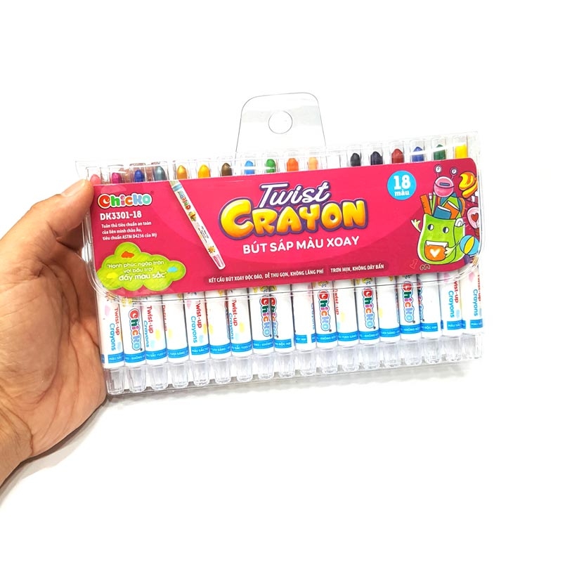 Bút Sáp Màu Xoay - 18 Màu DK 3301-18 (Túi Nhựa PVC) Sản phẩm được làm từ chất liệu sáp cao cấp, độ bám dính cao, màu sắc tự nhiên, an toàn cho sức khỏe người dùng. Sản phẩm gồm 18 màu, giúp trẻ ...