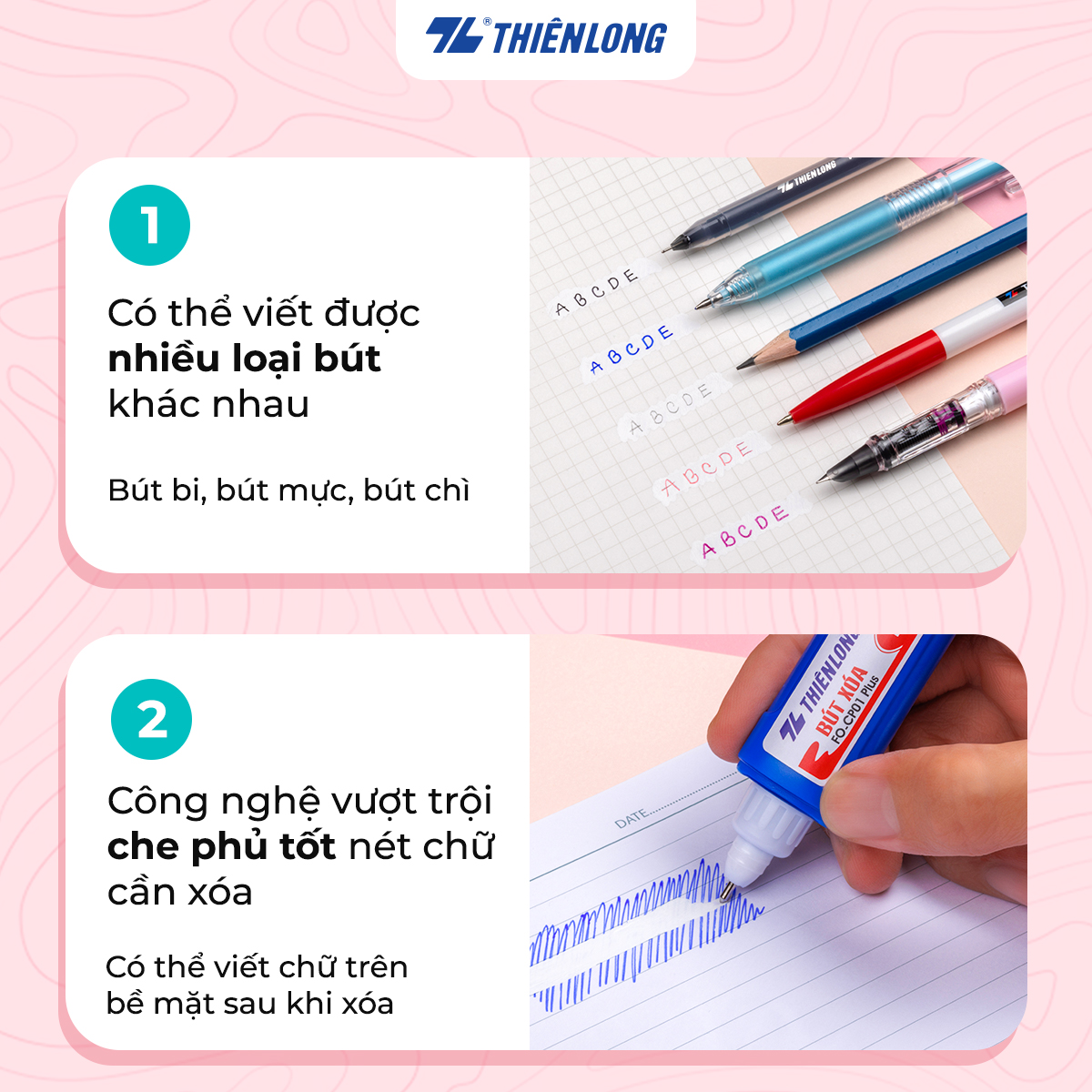 ️ Che phủ tốt nét chữ cần xóa, giúp cho chữ viết rõ ràng, không bị lem, nhòe.