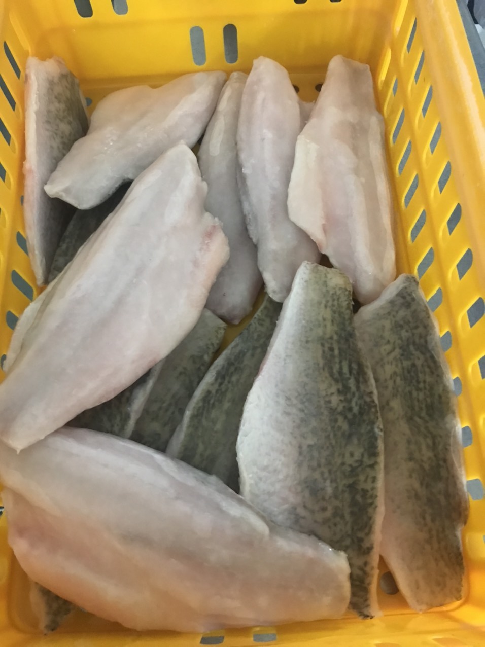Cá chẽm fillet còn da, rút xương cấp đông.