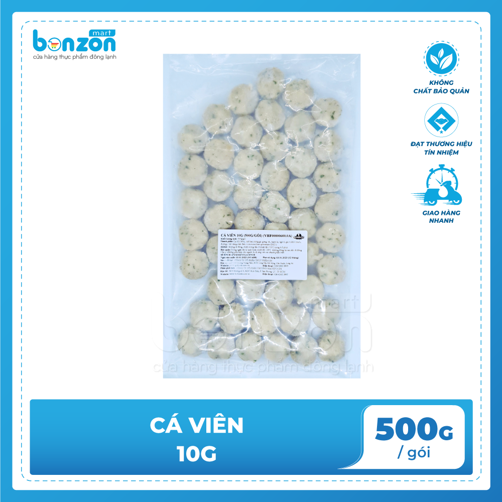 Với sản phẩm tươi sống, trọng lượng thực tế có thể chênh lệch khoảng 10%. ĐỊNH LƯỢNG: 10g/Cái - 500g/gói THÀNH PHẦN: Cá, mỡ heo, trứng gà, gừng, tỏi, hành lá, ngò rí, gia vị MÔ TẢ SẢN PHẨM: - Sản phẩm có màu trắng đặc trưng của cá, điểm xanh của hành ngò - Sản phẩm có độ dai, giòn và thơm đặc trưng CÁCH CHẾ BIẾN: - Không rã đông - Hấp: 100°C trong 2-3 phút - Chiên: Ở 170°C, thời gian 1-2 phút - Thả lẩu HSD: 12 tháng