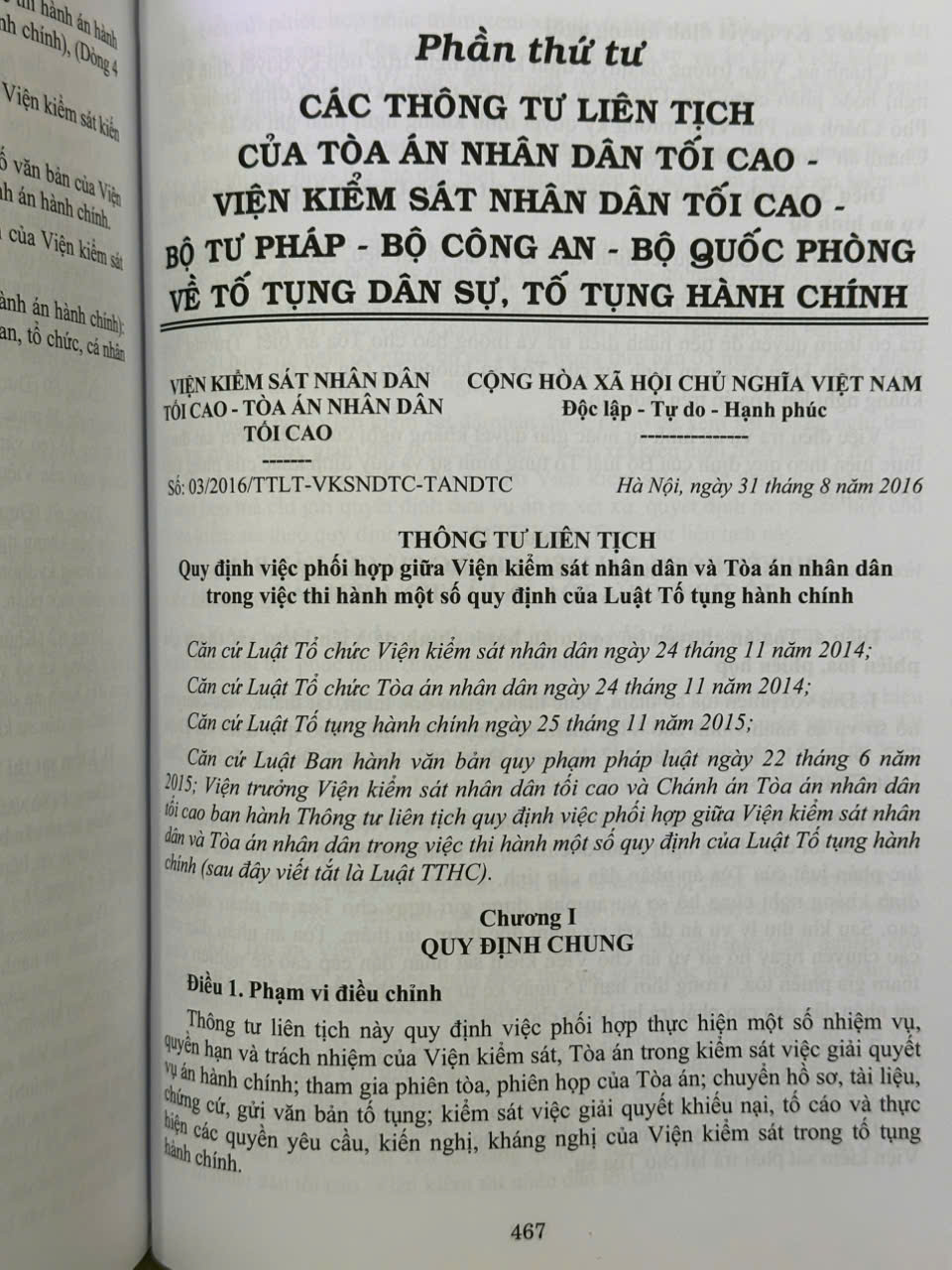 Phần thứ tư: Các Thông tư liên tịch của Tòa án nhân dân tối cao – Viện Kiểm sát nhân dân tối cao – Bộ Tư pháp – Bộ Công an – Bộ Quốc phòng về tố tụng dân sự, tố tụng hành chính