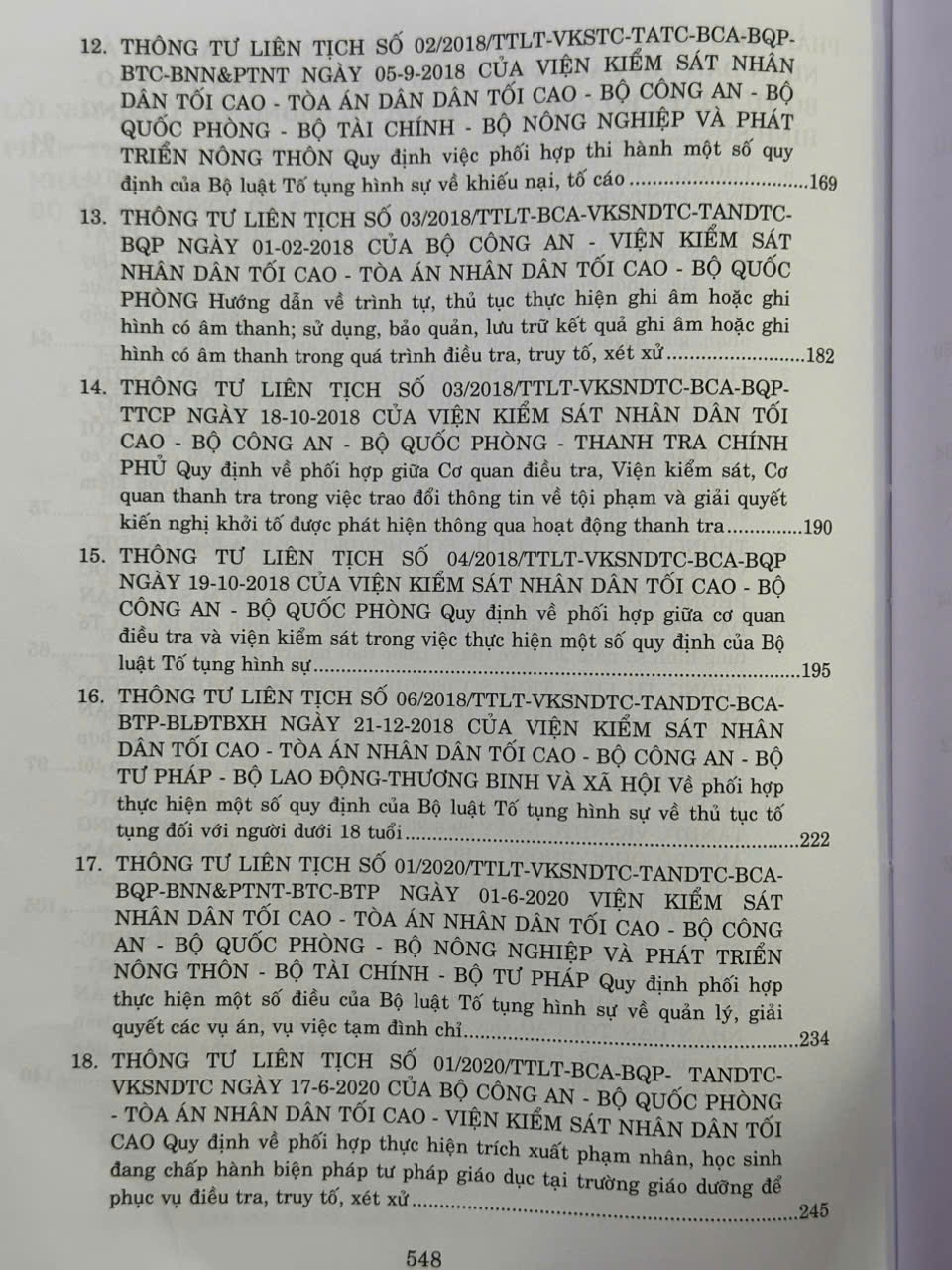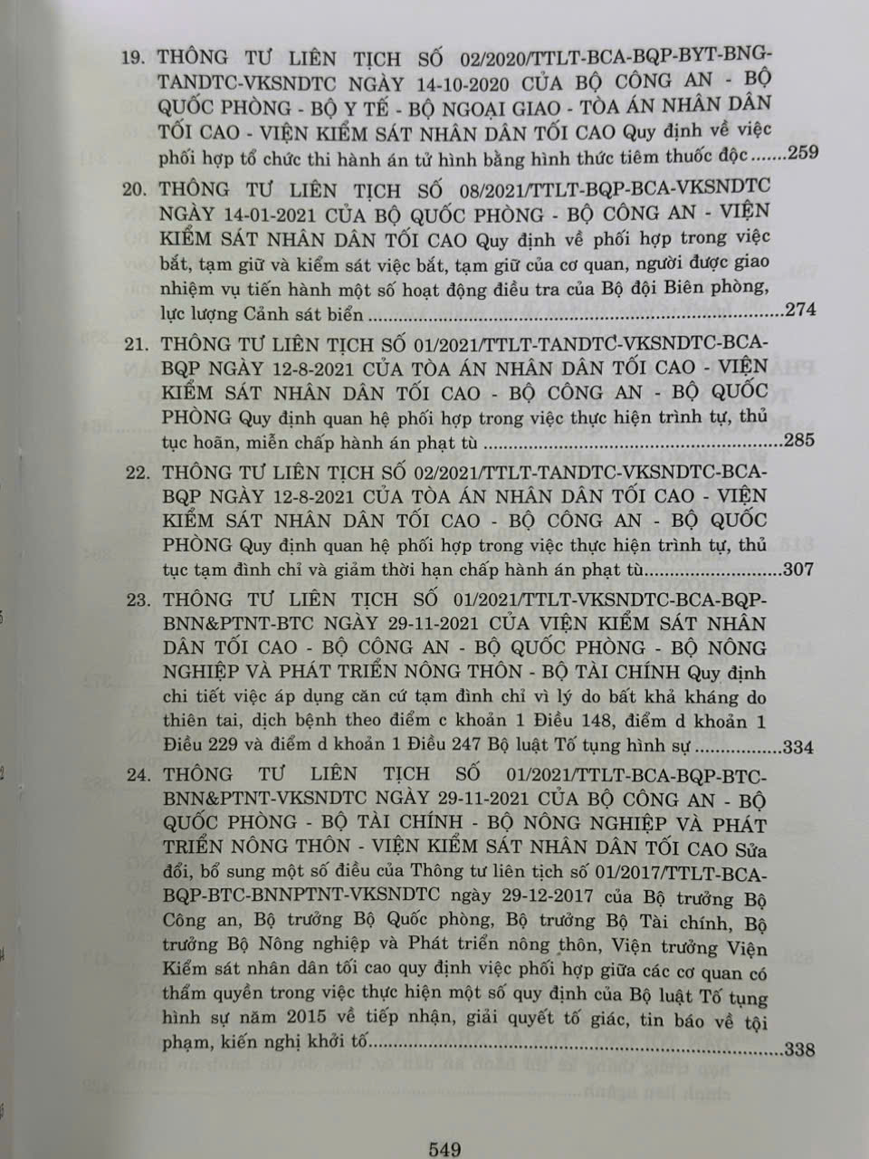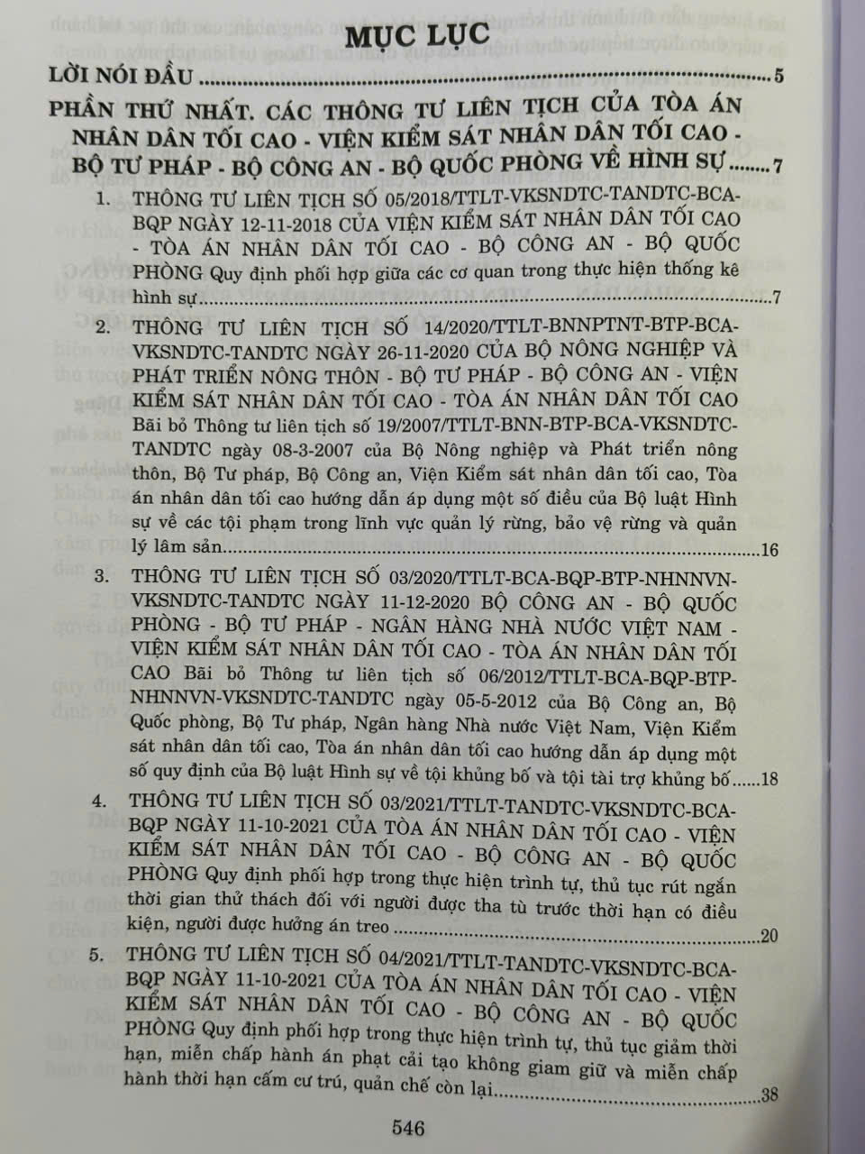 Sách Các Thông Tư Liên Tịch Của Tòa Án Nhân Dân Tối Cao, Viện Kiểm Sát Nhân Dân Tối Cao, Bộ Tư Pháp, Bộ Công An, Bộ Quốc Phòng Về Hình Sự, Tố Tụng Hình Sự, Dân Sự, Tố Tụng Dân Sự, Hành Chính, Kinh Tế, Thương Mại, Lao Động, Hôn Nhân Gia Đình Mới Nhất