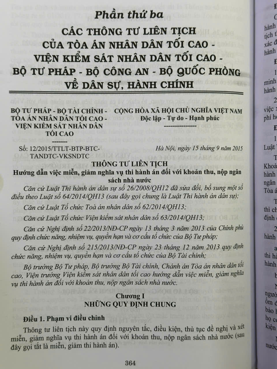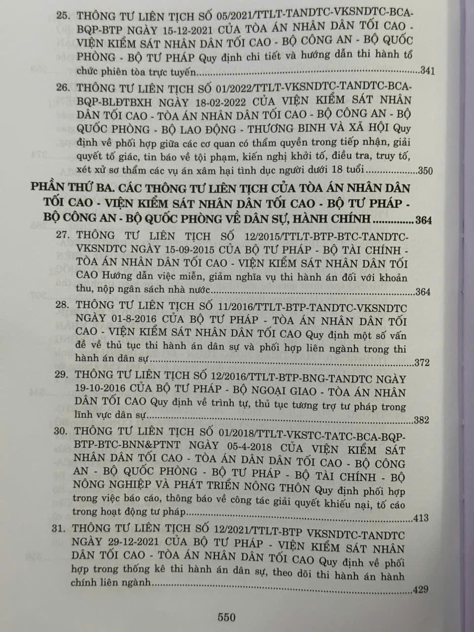 Phần thứ ba: Các Thông tư liên tịch của Tòa án nhân dân tối cao – Viện Kiểm sát nhân dân tối cao – Bộ Tư pháp – Bộ Công an – Bộ Quốc phòng về dân sự, hành chính
