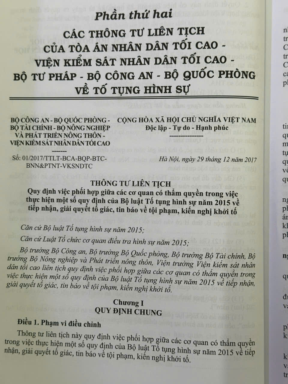 Phần thứ hai: Các Thông tư liên tịch của Tòa án nhân dân tối cao – Viện Kiểm sát nhân dân tối cao – Bộ Tư pháp – Bộ Công an – Bộ Quốc phòng về tố tụng hình sự