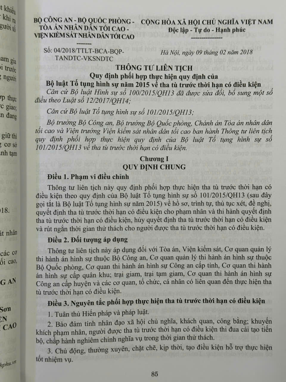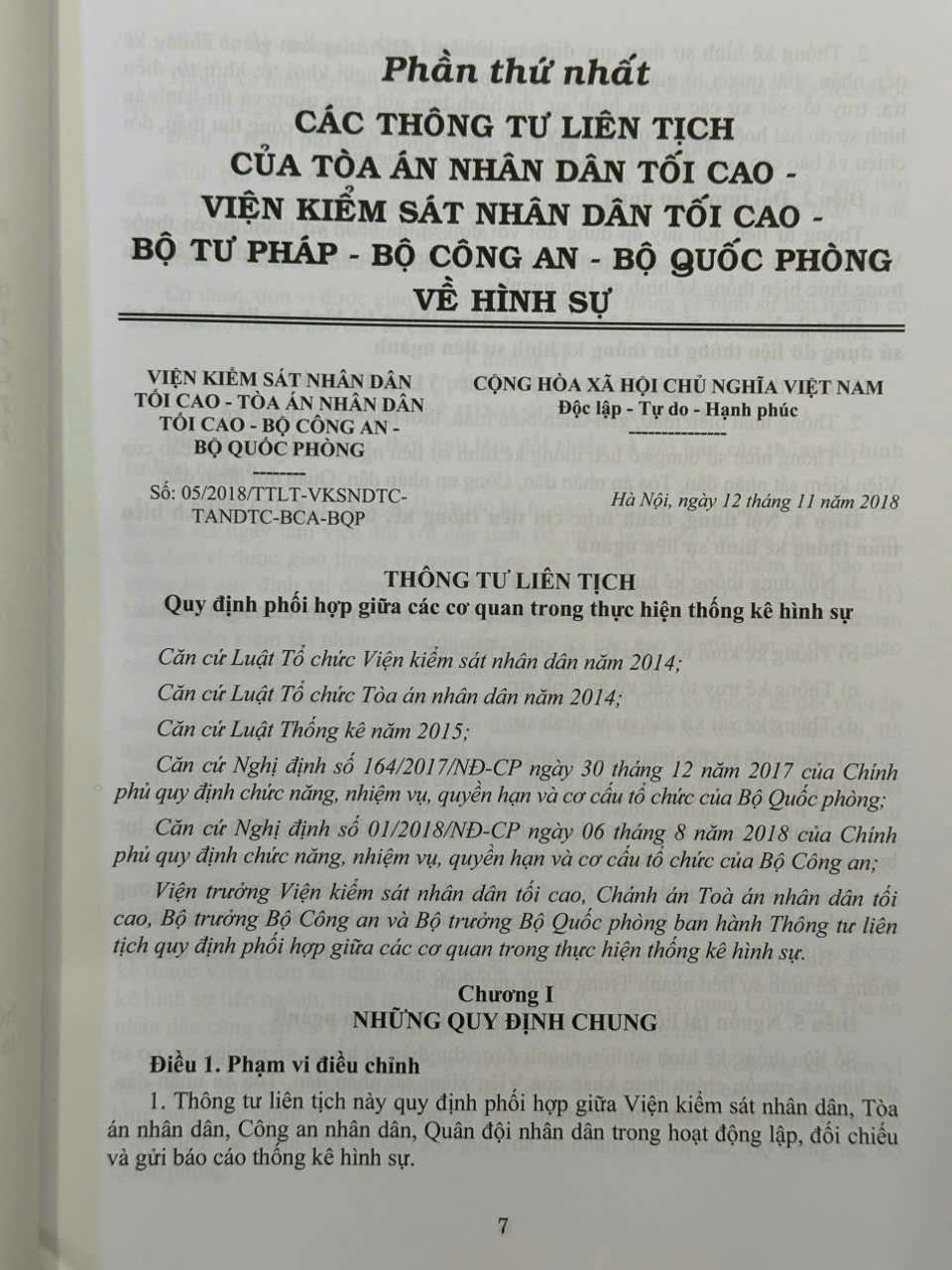 Phần thứ nhất: Các Thông tư liên tịch của Tòa án nhân dân tối cao – Viện Kiểm sát nhân dân tối cao – Bộ Tư pháp – Bộ Công an – Bộ Quốc phòng về hình sự