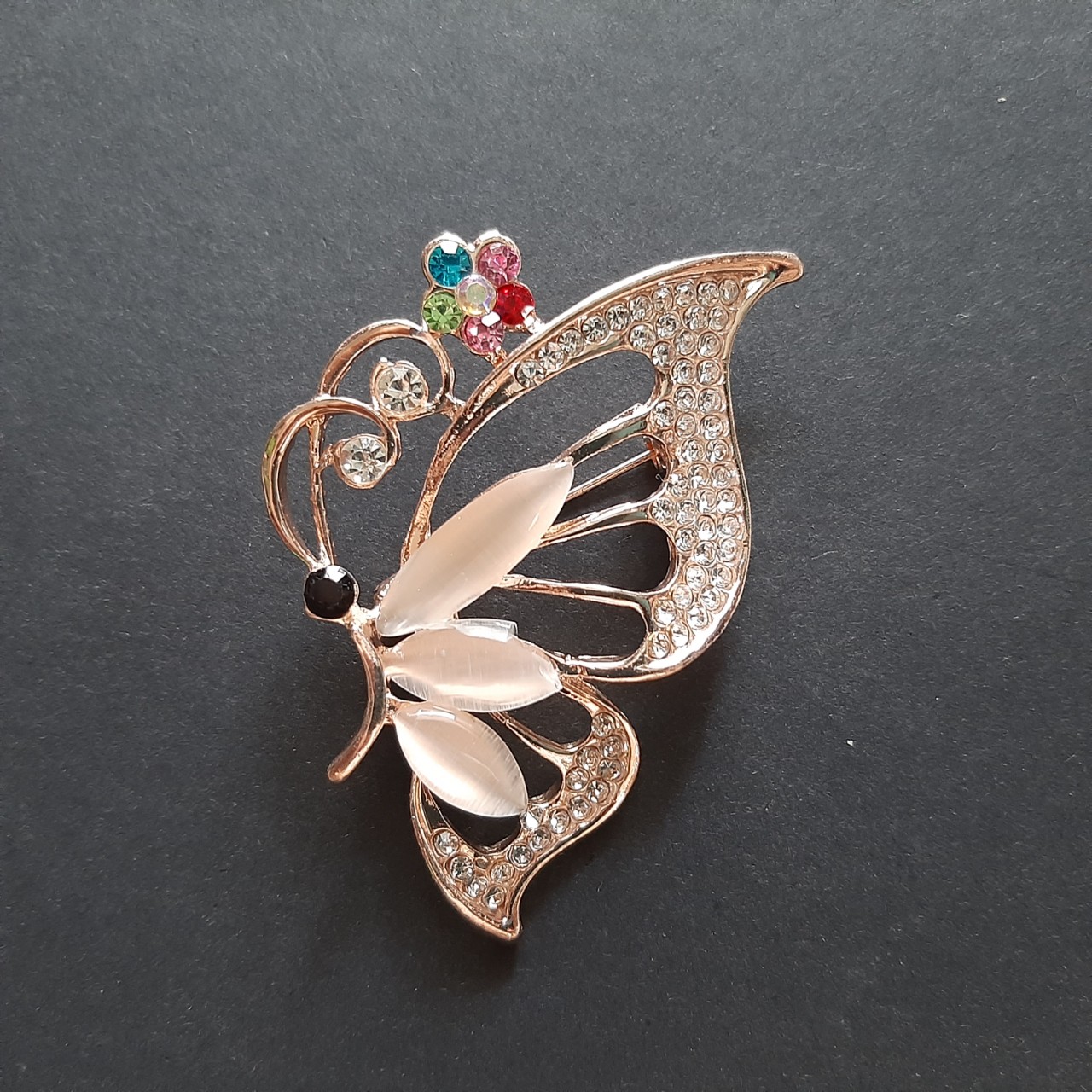 Trâm Cài Áo Nữ Quà Tặng Bươm Bướm Đính Đá Trắng Trang Nhã Sang Trọng (Kèm Hộp Quà Tặng)