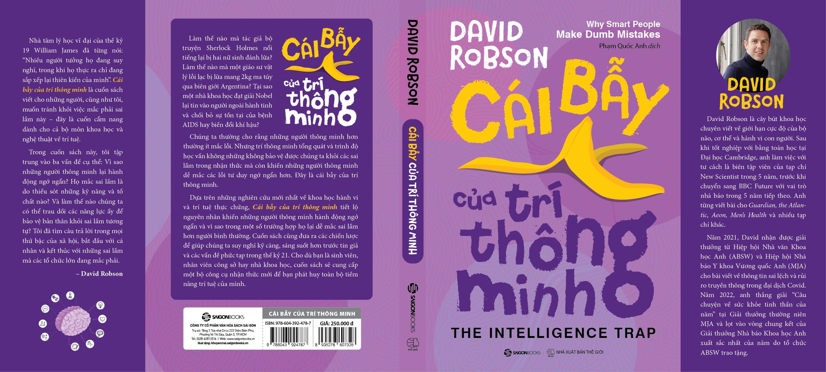CÁI BẪY CỦA TRÍ THÔNG MINH  Những mặt trái của trí thông minh   Cuốn sách dành cho cả bộ môn khoa học và nghệ thuật về trí tuệ Vì sao những người thông minh lại hành động ngớ ngẩn? Họ mắc sai lầm là do thiếu sót những kỹ năng và tố chất nào? Và làm thế nào chúng ta có thể trau đồi các năng lực ấy để bảo vệ bản thân khỏi sai lầm tương tự?   Tác giả David Robson trong cuốn sách Cái Bẫy Của Trí Thông Minh đã tìm câu trả lời trong mọi thứ bậc xã hội, bắt đầu với cá nhân và kết thúc với những sai lầm mà các tổ chức lớn đang mắc phải.   Cuốn sách này viết về nguyên nhân khiến những người thông minh hành động ngớ ngẩn và vì sao trong một số trường hợp họ lại dễ mắc sai lầm hơn những người bình thường. Cuốn sách cũng đưa ra các chiến lược mà tất cả chúng ta có thể áp dụng để tránh mắc phải những sai lầm tương tự: những bài học giúp chúng ta suy nghĩ kỹ càng và sáng suốt hơn trong thế giới hậu sự thật này.   The Intelligence Trap: Why Smart People Make Dumb Mistakes như Paul Frampton – một nhà vật lý học tài ba đã bị lừa.  Argentina và tác giả nổi tiếng Arthur Conan Doyle đã bị hai nữ sinh lừa gạt. Chúng ta cũng sẽ nhận ra các sai lầm tương tự trong cách tư duy có thể khiến cho bất cứ ai với trí thông minh hơn mức trung bình bị đánh lừa.   [Sách] Cái Bẫy Của Trí Thông Minh | The Intelligence Trap   Cái Bẫy Của Trí Thông Minh được chia làm 4 phần khoa học, dễ hiểu: Phần 1 có nhiệm vụ xác định vấn đề. Tại đây chúng ta sẽ tìm hiểu những sai lầm trong hiểu biết về trí thông minh và vì sao ngay cả những bộ óc lỗi lạc nhất vẫn có thể mắc lỗi – từ niềm tin ngoan cố của Arthur Conan Doyle vào những bà tiên cho đến cuộc điều tra có nhiều lỗ hổng của FBI về các vụ đánh bom tại thành phố Madrid vào năm 2004 – và lý do khiến những sai lầm này bị kiến thức và kinh nghiệm thổi phồng.   Phần 2 trình bày giải pháp cho các vấn đề nêu trên bằng cách giới thiệu ngành khoa học “trí tuệ thực chứng” mới, trong đó chỉ ra các tố chất tư duy và năng lực nhận thức vô cùng thiết yếu đối với khả năng lập luận tốt, đồng thời đưa ra các phương pháp thực tiễn để trau dồi các đặc tính này. Ngoài ra, chúng ta sẽ khám phá lý do vì sao trực giác thường phạm phải sai lầm và cách sửa chữa những sai lầm này để mài giũa bản năng của mình. Chúng ta cũng sẽ tìm hiểu các chiến lược để tránh tin vào thông tin sai lệch và thông tin giả để từ đó chắc chắn rằng quyết định của mình là hoàn toàn dựa trên bằng chứng vững chắc thay vì mơ mộng viển vông.   Phần 3 đưa chúng ta đến với phương pháp học tập và ghi nhớ một cách khoa học. Dù sở hữu năng lực tư duy tốt, những người thông minh đôi khi vẫn gặp khó khăn khi tìm cách học tập hiệu quả, khiến cho phong độ của họ bị chững lại và không phản ánh hết năng lực tiềm ẩn bên trong. Trí tuệ thực chứng có thể giúp phá bỏ vòng tròn luẩn quẩn này và đưa ra ba nguyên tắc cho việc học sâu. Ngoài việc giúp đỡ chúng ta đạt được các mục tiêu cá nhân, nghiên cứu này cũng giải thích vì sao hệ thống giáo dục ở khu vực Đông Á đã áp dụng thành công những nguyên tắc này và bài học mà nền giáo dục phương Tây có thể đúc rút để đào tạo ra những người học hiệu quả, có tư duy khôn khéo hơn.   Cuối cùng, Phần 4 hướng sự chú ý của chúng ta ra khỏi từng cá thể để khám phá nguyên nhân vì sao các nhóm gồm những nhân tài cũng lại hành động một cách ngớ ngẩn – từ sự thất bại của đội tuyển bóng đá Anh cho đến khủng hoảng trong các tổ chức lớn như BP, Nokia và NASA.   Nhà tâm lý học vĩ đại của thế kỷ 19 William James đã từng nói: “Nhiều người tưởng họ đang suy nghĩ, trong khi họ thực ra chỉ đang sắp xếp lại thiên kiến của mình”. Cái Bẫy Của Trí Thông Minh là cuốn sách viết cho những người muốn tránh khỏi việc mắc phải sai lầm này – đây là cuốn cẩm nang dành cho cả bộ môn khoa học và nghệ thuật về trí tuệ.     Tác giả: David Robson Công ty phát hành: Saigon Books Mã sản phẩm: 8935278607328 Nhà xuất bản: NXB Thế Giới Kích thước: 15.5 x 23.5 cm Số trang: 408 Khối lượng: 700.0 gram Năm phát hành: 09/2023