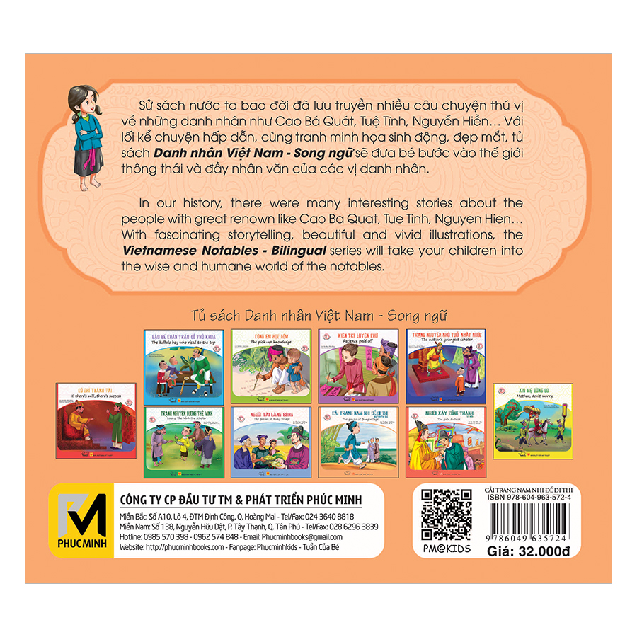 Với ngôn ngữ ngắn gọn, cách diễn đạt dễ hiểu gần gũi sinh động, nội dung các câu chuyện về danh nhân trong bộ sách Danh nhân Việt Nam song ngữ đều mang những thông điệp và bài học về đạo đức ý nghĩa cho trẻ. Các tấm gương sáng hiếu học, không ngại khó ngại khổ chắc chắn sẽ bồi đắp thêm rất nhiều nghị lực và nuôi dưỡng đam mê cho trẻ sau này. Bé sẽ học thêm được nhiều tính cách tốt như kiên trì, nhẫn nại, không sợ việc khó, không ngại khổ để có thể thành công trong tương lai.