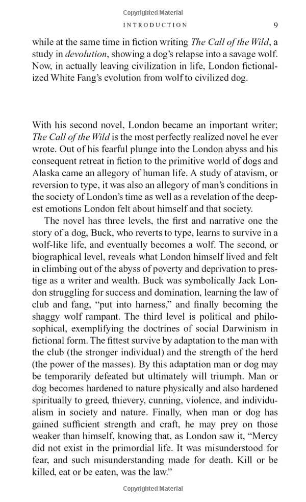 The Call Of The Wild is the story of Buck, a dog stolen from his home and thrust into the merciless life of the Arctic north to endure hardship, bitter cold, and the savage lawlessness of man and beast. White Fang is the adventure of an animal -- part dog, part wolf --turned vicious by cruel abuse, then transformed by the patience and affection of one man.