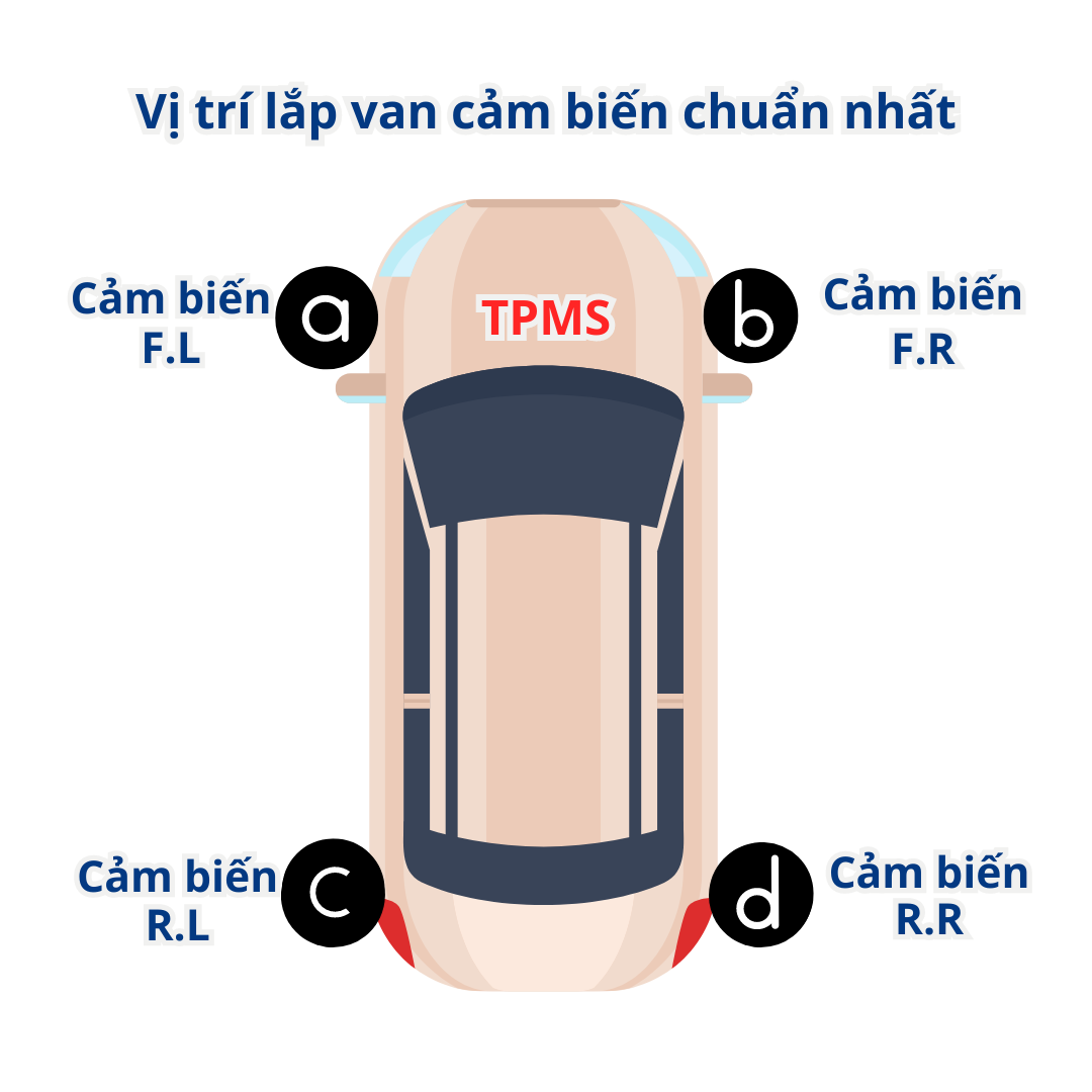 - Van cảm biến được lắp đặt bên ngoài lốp xe.