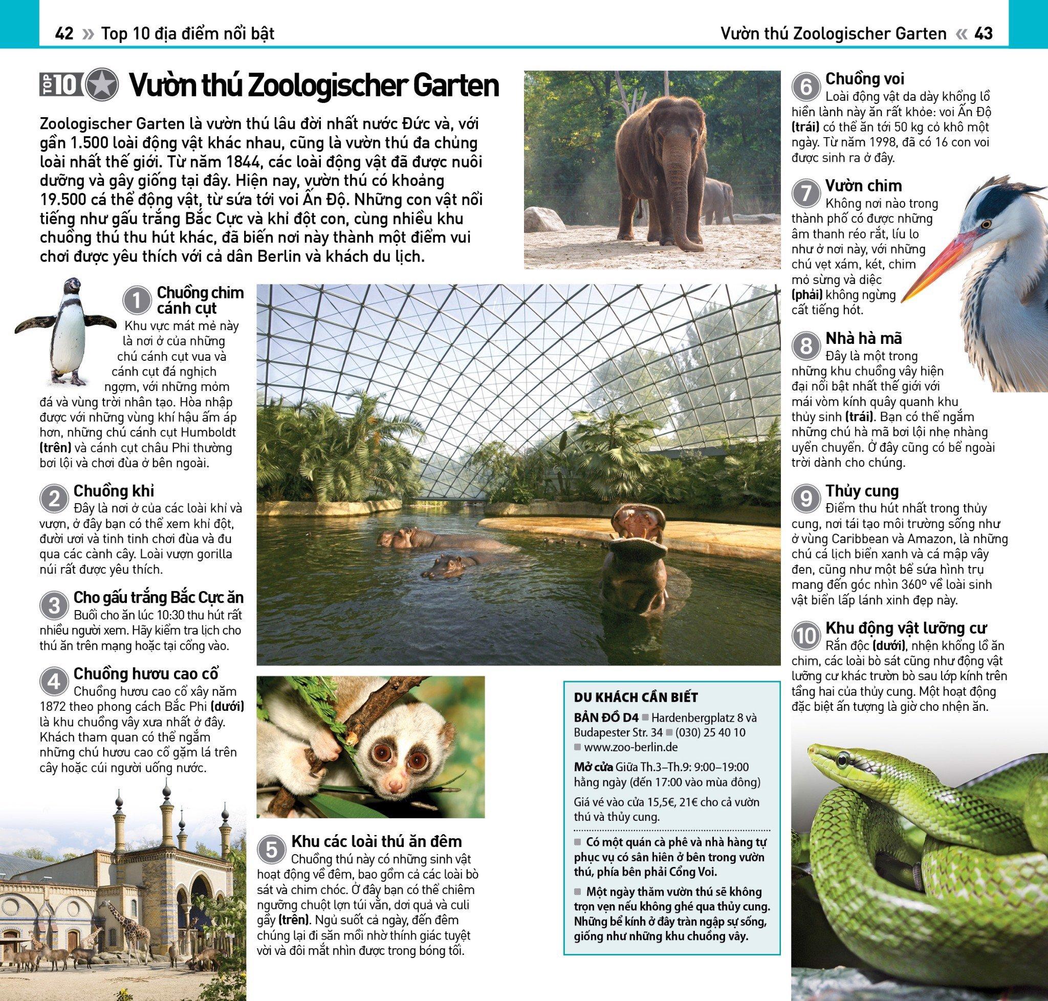Top 10 Berlin sẽ tổng hợp những gì tuyệt vời nhất nơi đây, từ những quán cà phê thời thượng ở Khu Prenzlauer Berg tới những câu lạc bộ đêm ở Khu Kreuzberg và những khuôn viên hoàng gia ở Khu Charlottenburg, thêm vào những mẹo nhỏ hữu ích, những trải nghiệm miễn phí, 12 gợi ý lộ trình tham quan được nhiều thắng cảnh trong thời gian ngắn nhất, hình ảnh truyền cảm hứng và những tấm bản đồ chi tiết, vậy là bạn đã có được người bạn đồng hành lí tưởng cho chuyến đi của mình. Chúc bạn có một trải nghiệm tuyệt vời với Berlin, và với cuốn sách này.