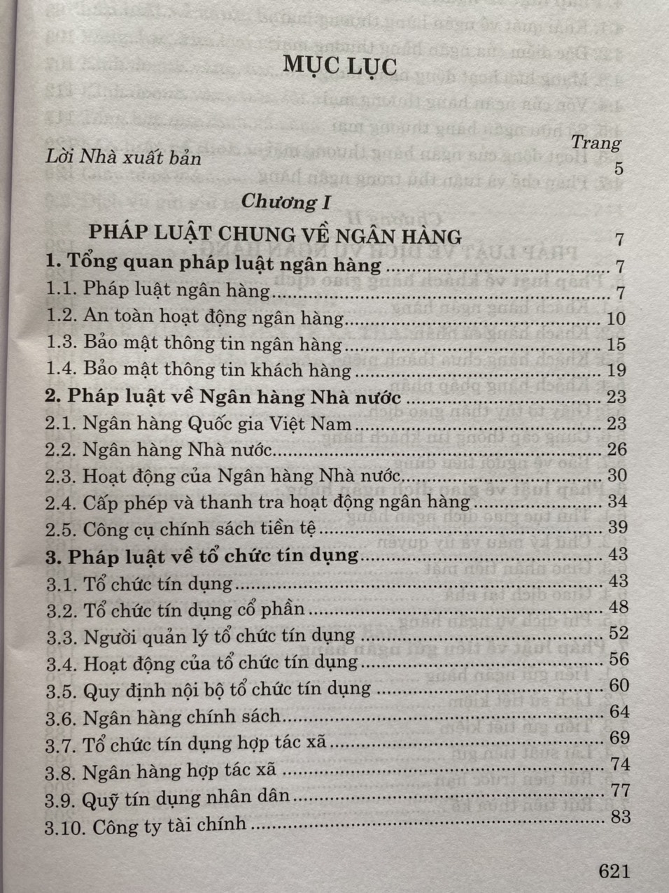 Mua tại TiktokNội dung cuốn sách gồm 5 chương, 21 mục và 139 tiểu mục, trình bày pháp luật chung về ngân hàng, pháp luật về: dịch vụ ngân hàng, tiền tệ và thanh toán, tín dụng ngân hàng, xử lý nợ và rủi ro. Qua đó, không chỉ giúp bạn đọc có được bức tranh toàn cảnh về pháp luật ngân hàng mà còn thấy được những điểm nhấn về những vấn đề quan trọng, nổi bật hoặc còn tranh cãi trong lĩnh vực này. Đồng thời, cuốn sách giúp bạn đọc hoạt động trong, ngoài lĩnh vực ngân hàng và các doanh nghiệp trang bị những tri thức cần thiết để tham gia các giao dịch liên quan một cách thuận lợi, đúng pháp luật và tránh rủi ro.