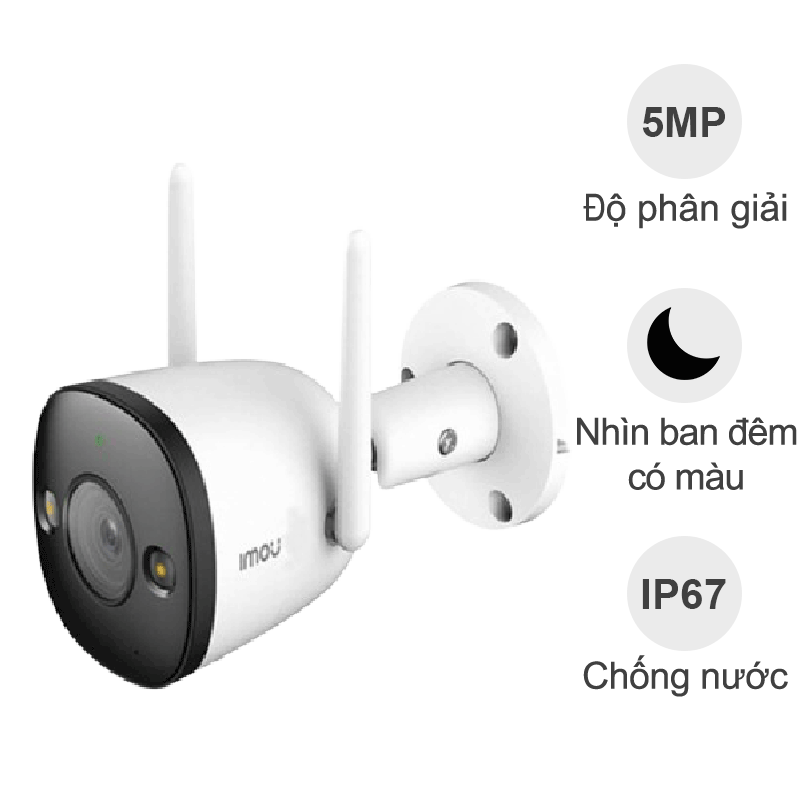 Nhờ được trang bị khả năng chống nước, bụi chuẩn IP67, camera có thể chịu được môi trường có độ ẩm hoặc tỉ lệ bụi cao, thời tiết mưa nắng thất thường,… yên tâm sử dụng cho các vùng không gian ngoài trời. Camera Imou IPC-F52FP 5MP là dòng camera cố định lắp đặt ngoài trời. Có khả năng chống chịu bụi bẩn và thời tiết. Bạn có thể yên tâm lắp đặt chiếc camera này ở bất kỳ đâu trong nhà.