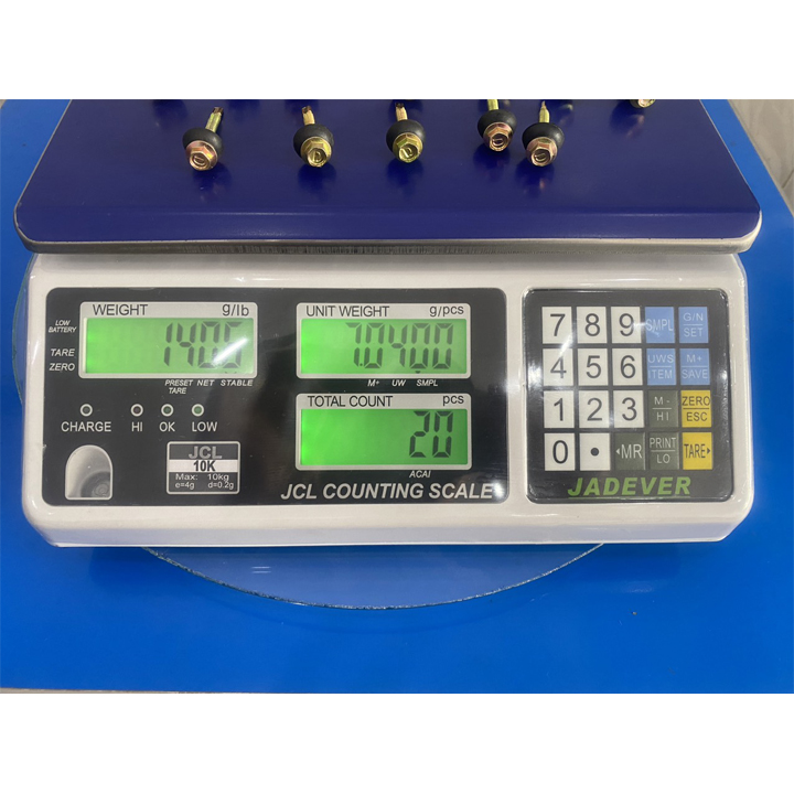 Cân điện tử Jadever JCL là dòng cân đếm điện tử, có độ chính xác cao, cấp III theo OIML, với kiểu dáng thiết kế chống bụi phù hợp với ngành công nghiệp, dịch vụ. Chuyên sử dụng trong các ngành sản xuất, chế tạo, vận chuyển, văn phòng, y tế, giáo dục ... Có khả năng đếm các vật nhỏ với độ chính xác cao.