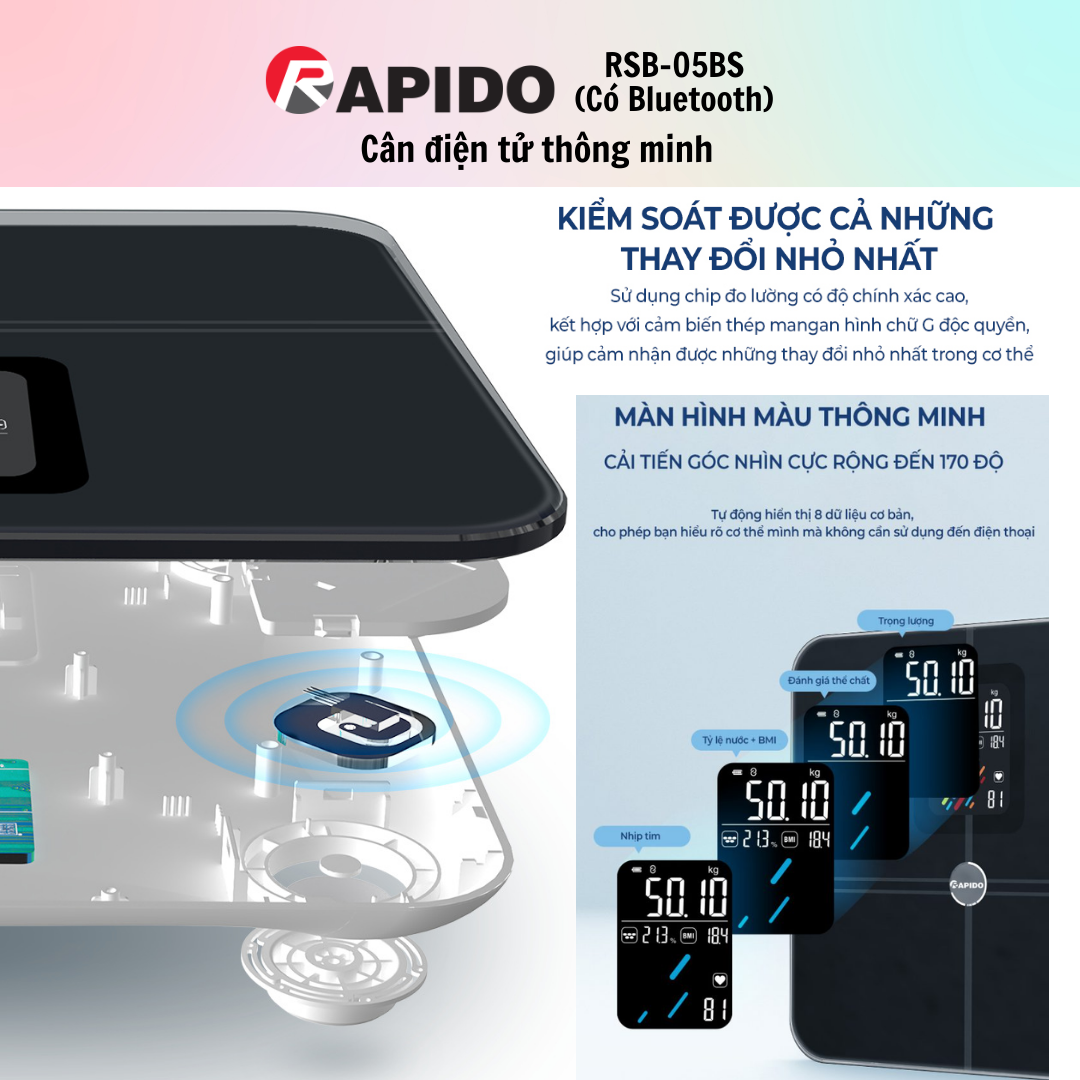 ✨Cân sức khỏe Rapido RSB05-BS - Hàng chính hãng - Bảo Hành 12 Tháng