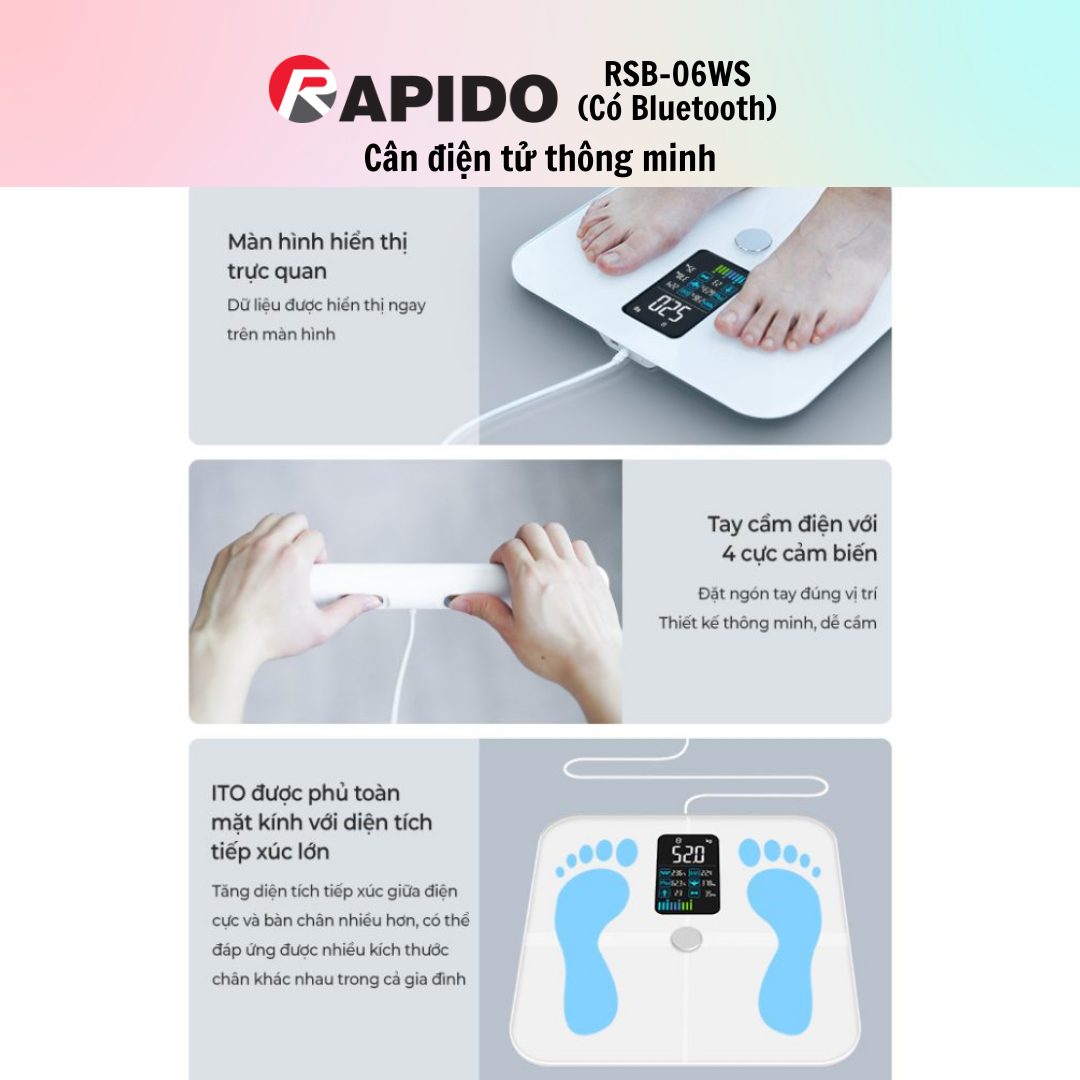 ✨Cân sức khỏe thông minh Rapido RSB-06WS - Hàng chính hãng - Bảo Hành 12 Tháng
