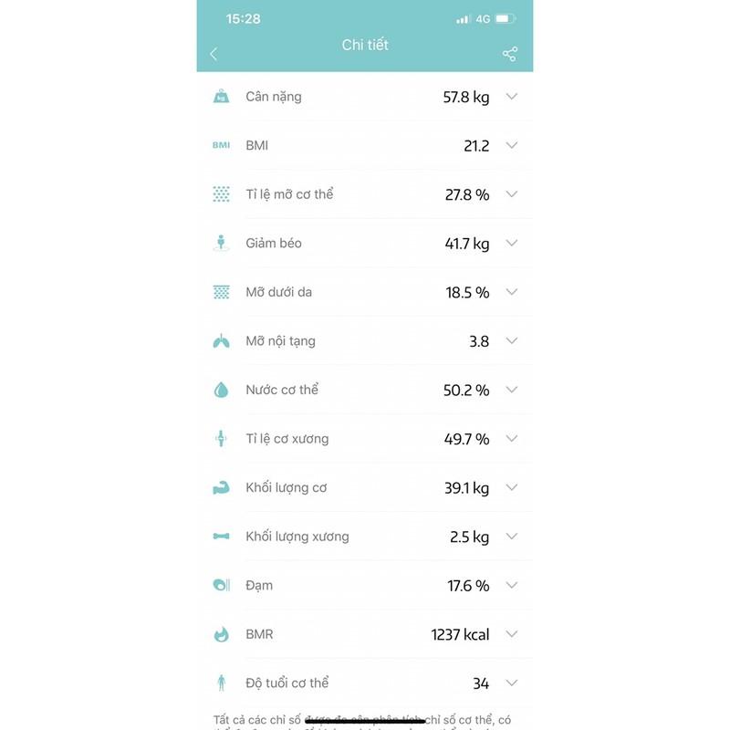 - Chất liệu: Kính chịu lực - Kích thước màn hình: 60mm - Bộ nhớ:8 người - Màn hình hiển thị: LCD - Chức nắng: tính thành phần cơ thể - Trọng lượng sản phẩm: