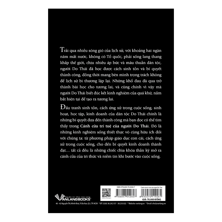 Đấu tranh sinh tồn, cách ứng xử trong cuộc sống, sinh hoạt, học tập, kinh doanh của dân tộc Do Thái chính là những bí quyết đưa đến thành công mà bạn đọc có thể tìm thấy trong Cánh cửa trí tuệ của người Do Thái. Đó là những kinh nghiệm sống thiết thực, vô cùng hữu ích đối với chúng ta: từ phương pháp giáo dục con cái, cách ứng xử trong cuộc sống, cho đến bí quyết kinh doanh thành đạt… Tất cả đều là những chiếc chìa khóa thần kỳ mở ra cánh cửa của tri thức và niềm tin khi bước vào cuộc sống .