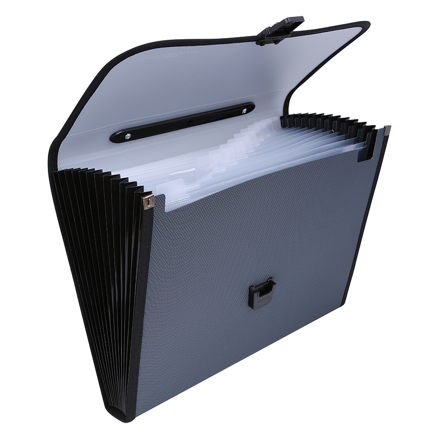 • Thiết kế như chiếc cặp sách cài dây thun bên ngoài giúp giữ tài liệu không bị rơi rớt ra ngoài, bên trong được chia làm 13 ngăn riêng biệt thích hợp sử dụng trong văn phòng, trong việc lưu giữ tài liệu học tập cho học sinh, sinh viên.