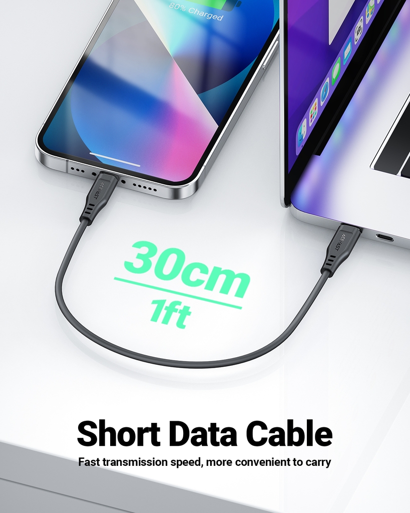 Thiết kế tối giản với độ dài 1.2m tương thích nhiều thiết bị, có thể đáp ứng hầu hết những nhu cầu sử dụng hàng ngày Công suất tối đa 30W với màn hình hiển