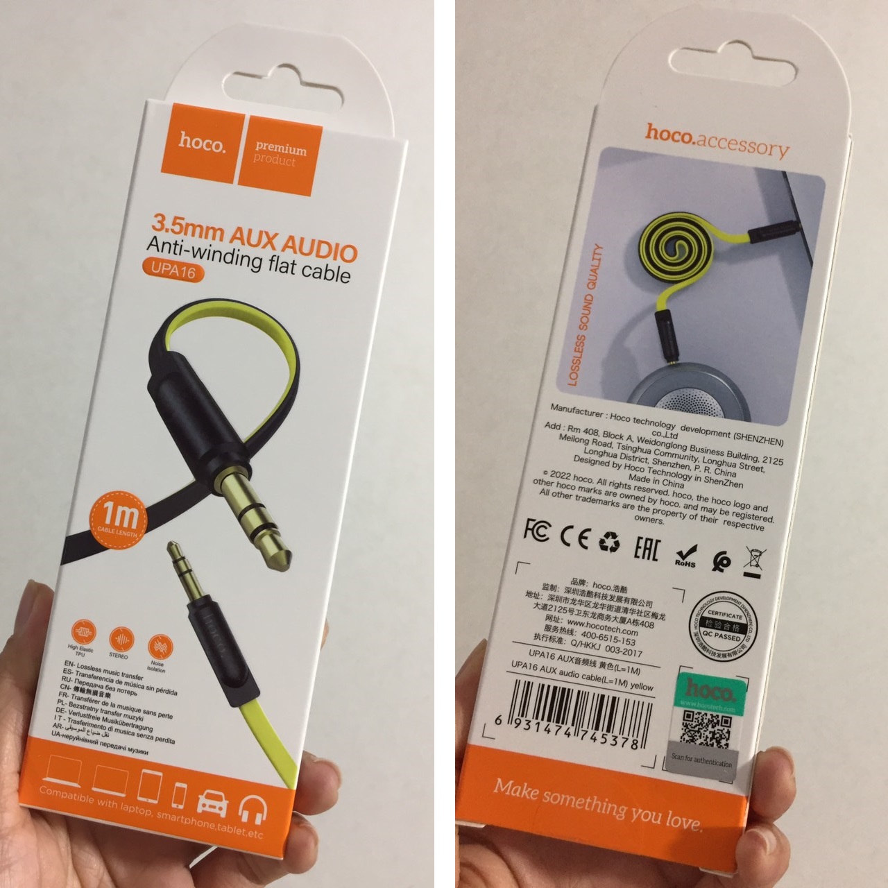 Cáp âm thanh 2 đầu 3.5mm thương hiệu hoco - Model: UPA16 - Sản xuất tại Trung Quốc Mô tả: - Giao diện: 2 đầu 3.5mm male -Đầu kết nối mạ vàng, lõi dây dẫn