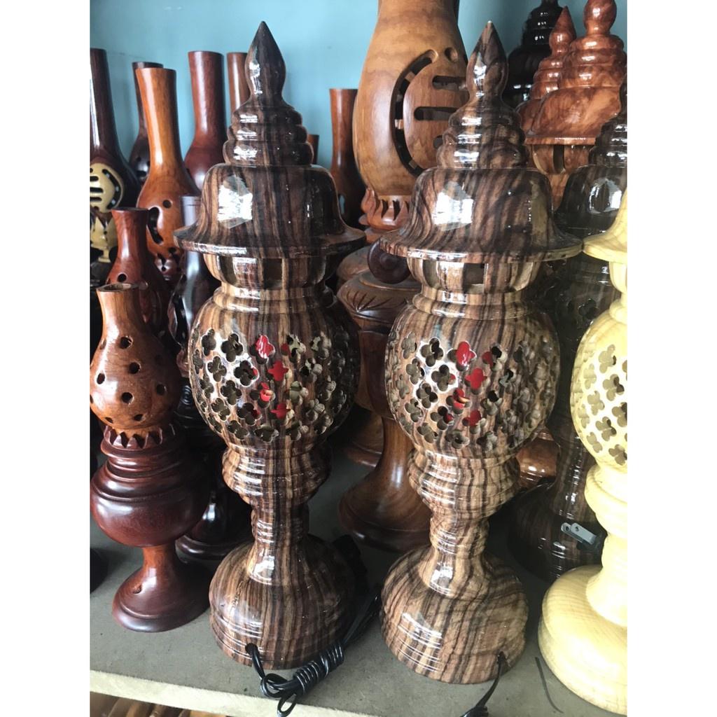 Cặp đèn gỗ cao cấp, hoa văn đẹp ,sắc sảo, hình ảnh shop tự chụp. Hàng đảm bảo chất lượ: 34cm.Kích thước: cao 34m., Chất liệu: gỗ xà cừMô tả: sản phẩm được gia công cẩn thận, kĩ càng , không bị mối mọt, dập lứt, độ bền sử dụng caomàu đen vân