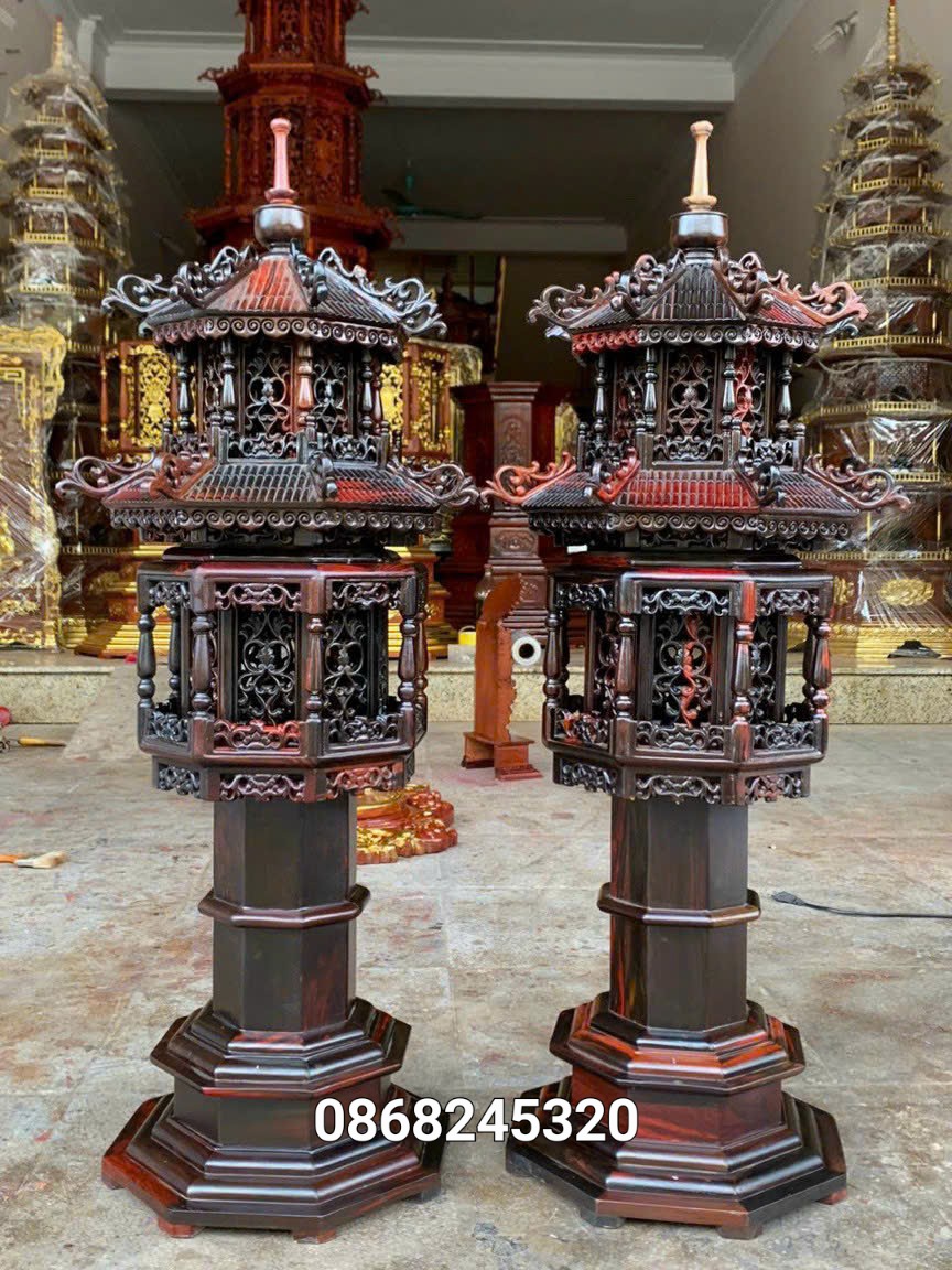Cặp đèn thờ bát giác 2 mái chất liệu gỗ trắc đen đỏ #đồ_gỗ #gỗtrắc #denthogotrac