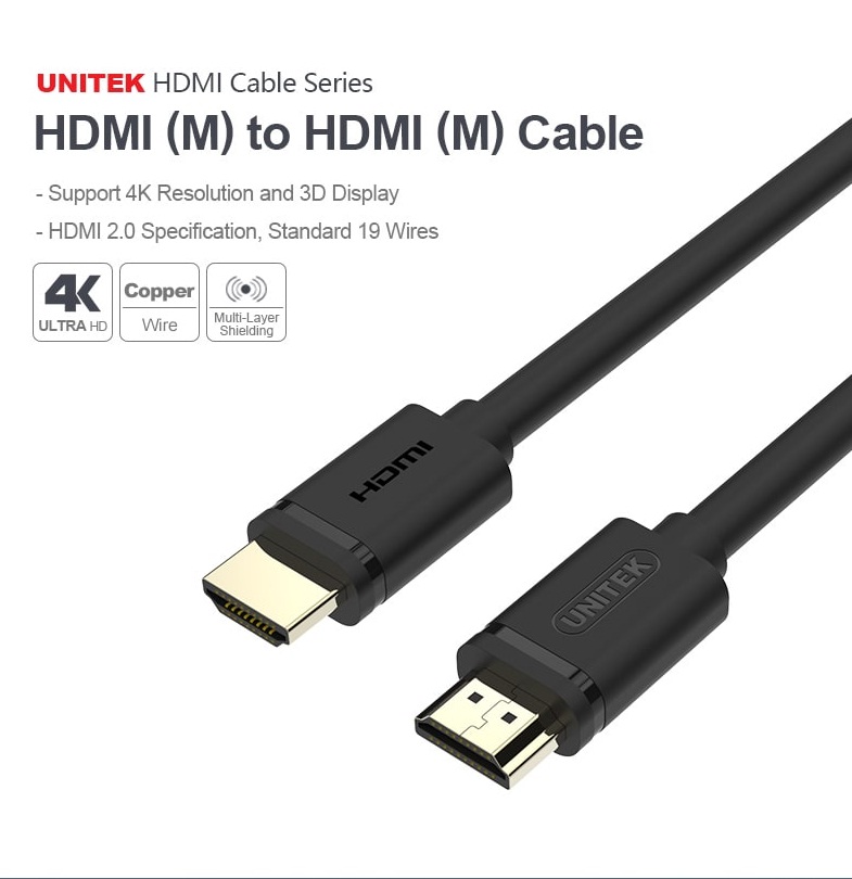 Cáp HDMI Unitek 1,5m,3m chuẩn 1.4 hỗ trợ 3D 2K 4K
