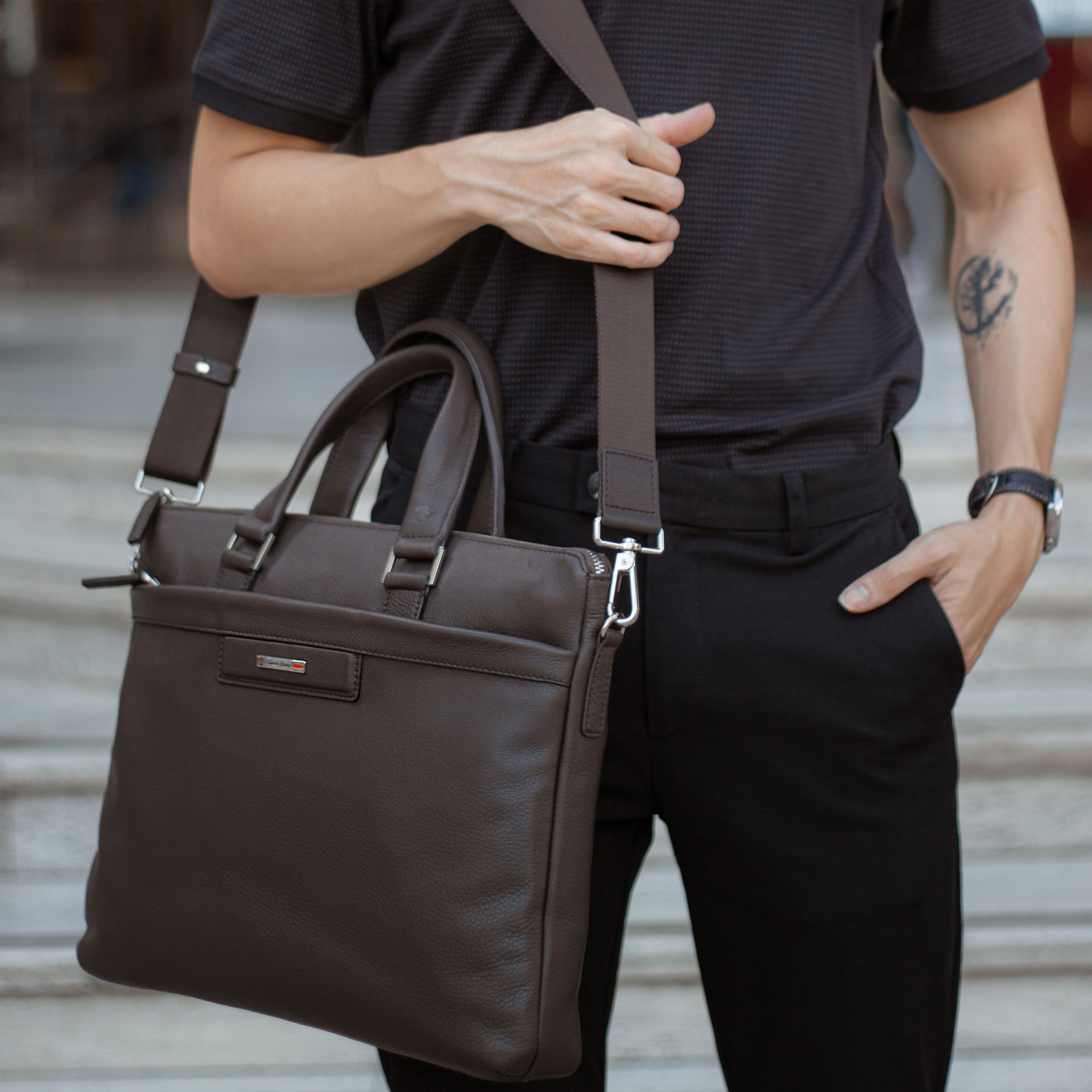 - Túi xách nam công sở Gence da bò Swift màu nâu GCE26 - Xuất xứ: Việt Nam - Mã SP: GCE26 - Sử dụng: Túi xách, cặp da đeo ngang vai, Đựng được máy tính xách tay