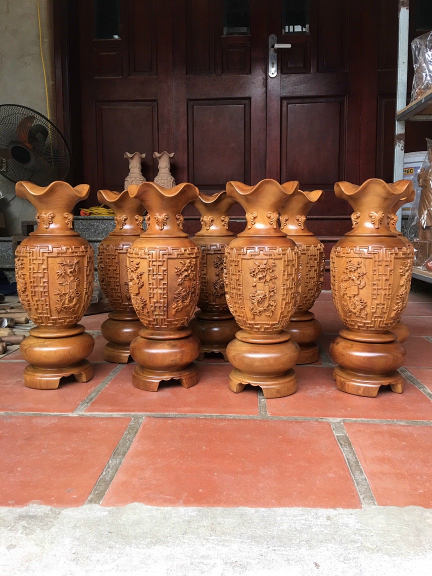 Cặp Bình Gỗ nu gõ hay gõ vẽ nu cao tròn đều đẹp cao 60cm x đk 20cm ý nghĩa bình an , phú quý Anh Chị trưng phòng khách nhà, công ty, bàn thờ