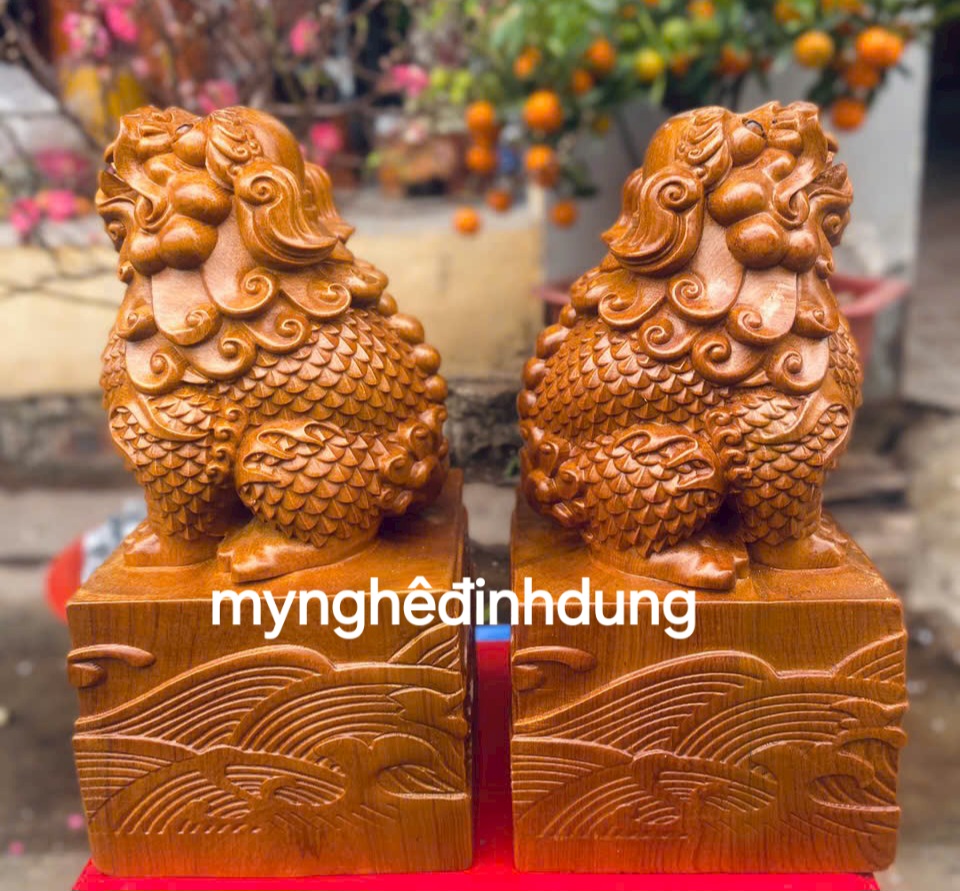 ✨Cặp nghê tài lộc bằng gỗ bách xanh thơm nức cao 23x12x12cm