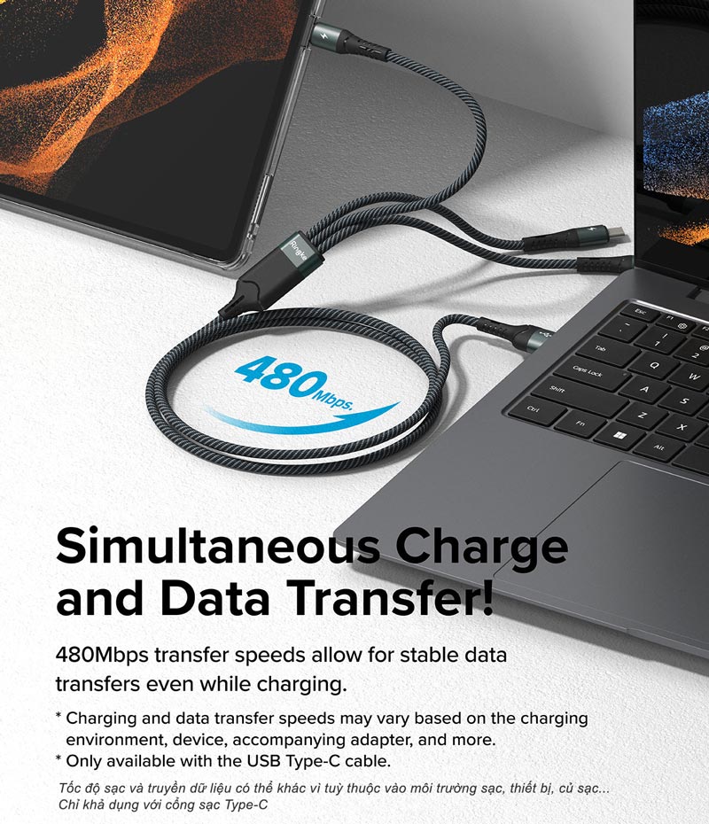 Cáp hỗ trợ công suất sạc nhanh lên đến 100W (20V - 5A), lý tưởng để sạc nhanh cho các thiết bị công suất cao như MacBook Pro, iPad Pro, cũng như các dòng laptop,