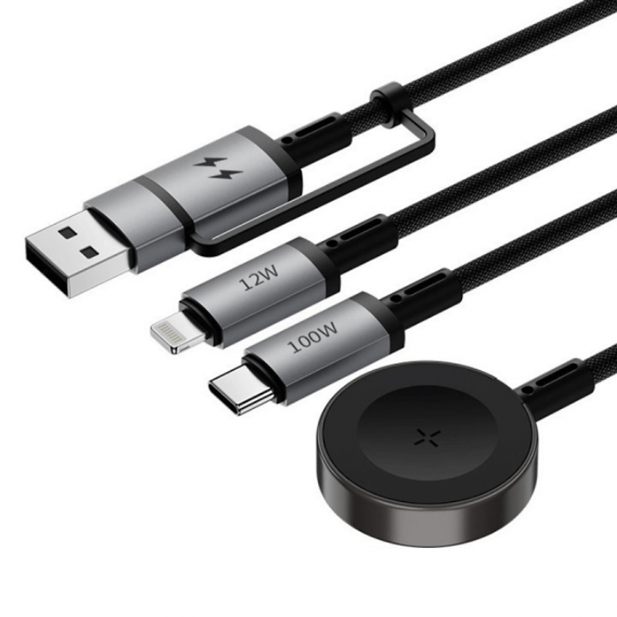 Cáp Sạc Đa Năng WiWU Raptor 4in1 100W – USB-A + USB-C to USB-C + L(iP) – Siêu Tiện Lợi, Sạc Cực Nhanh Một dây – sạc tất cả! Cáp sạc đa năng WiWU Raptor