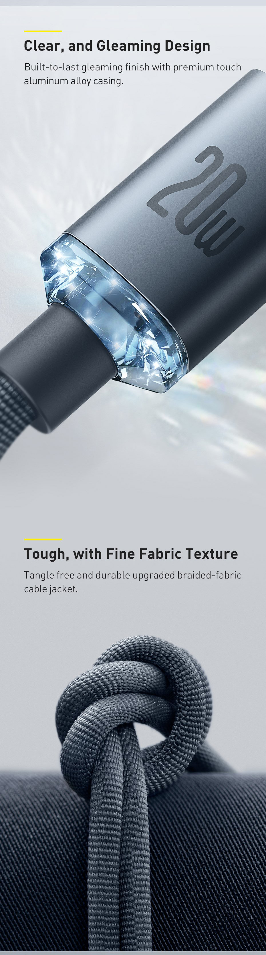 Cáp sạc nhanh và truyền dữ liệu Ba-se-us 20W, Ba-se-us Crystal Shine Series Fast Charging Data Cable