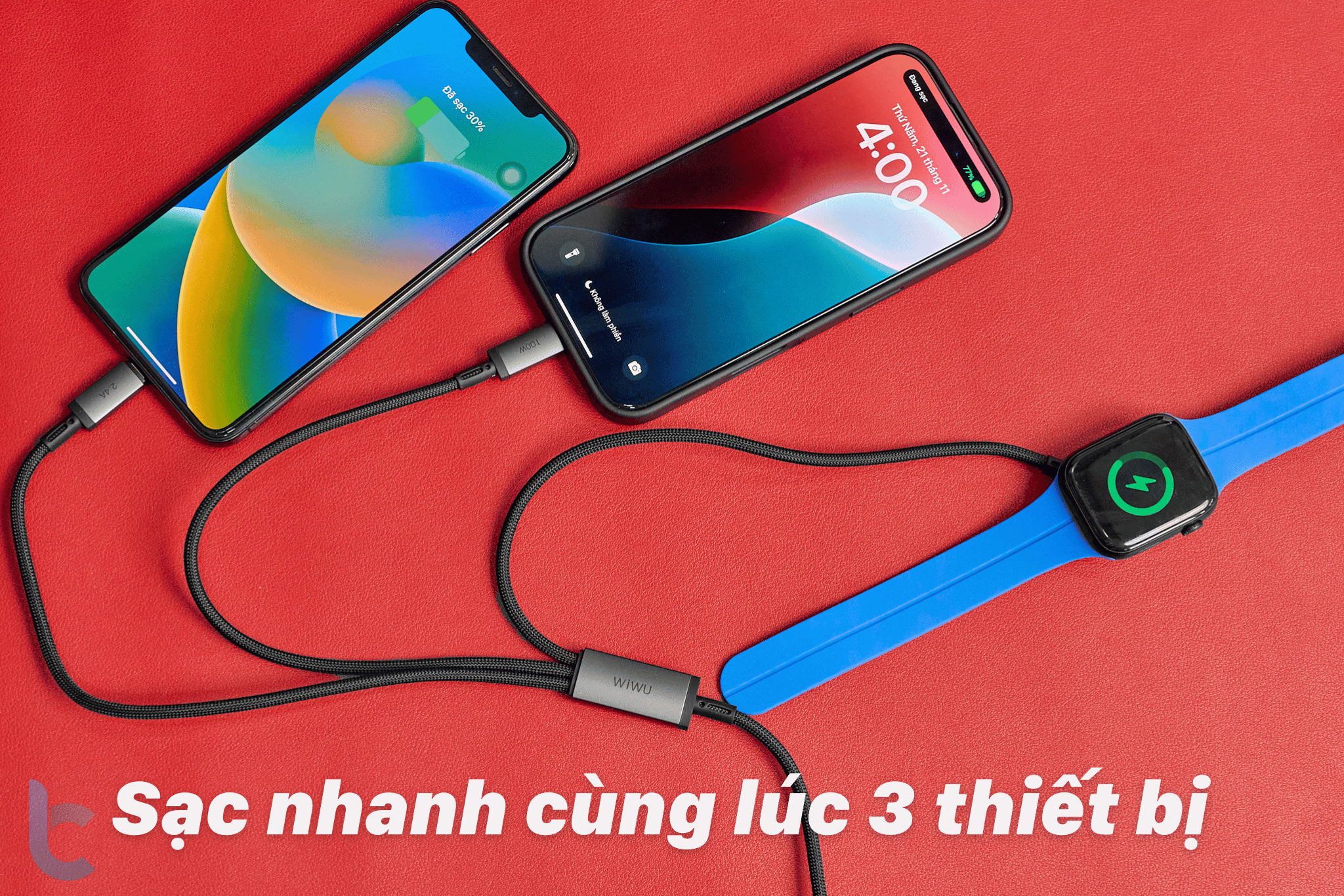 Cáp Sạc Nhanh WiWU Legend 3in2 100W 6 Cổng Chuyển Dài 120cm Tiện Lợi #daysaciphone #videoshort