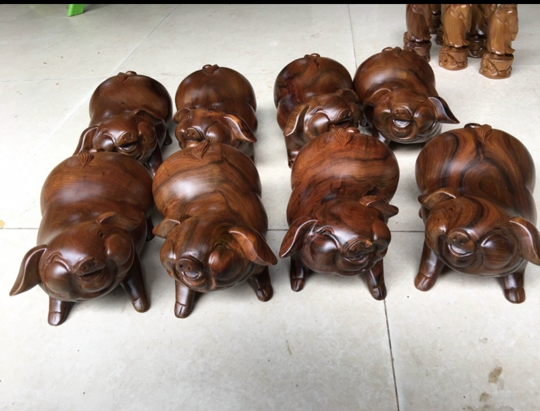 ✨Cặp tượng điêu khắc con heo (lợn ) cầu tài lộc gỗ bách xanh thơm phức kt 20×12×10cm